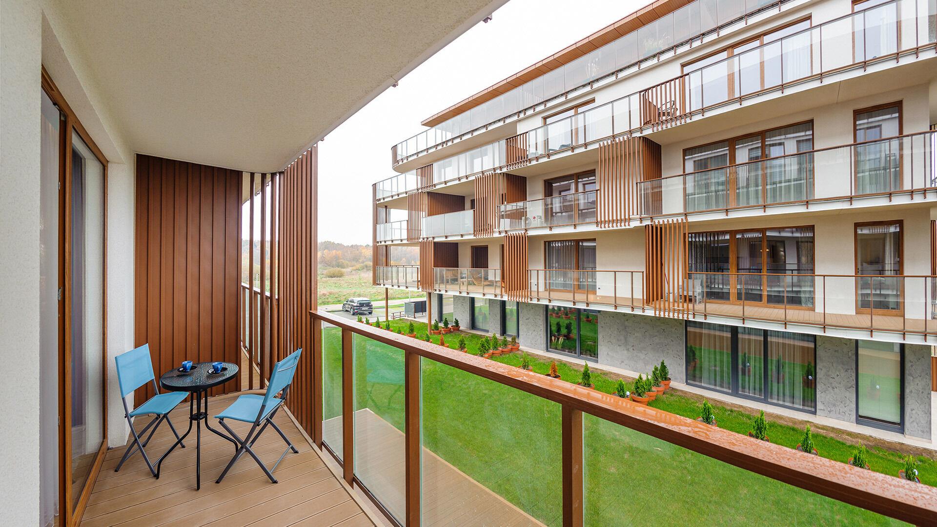 Die Apartments im Objekt Resorts Kolobrzeg befinden sich im westlichen Teil von Kolobrzeg, abseits des städtischen Trubels, umgeben vom Grün des NATURA-2000-Parks. Diese Lage garantiert saubere Luft, malerische Ausblicke und direkten Kontakt zur Natur. Die Plazowa-Straße mit ihren breiten Gehwegen und Radwegen ist ein Teil der R10-Fahrradroute. Ein fünfminütiger Spaziergang über einen direkten Zugang zum Meer reicht aus, um den breiten, sandigen „Weststrand” zu erreichen; ganz in der Nähe befindet sich auch ein Hundestrand. Alle Apartments sind hochwertig ausgestattet und verfügen über funktionale, voll ausgestattete Küchenzeilen sowie geräumige Terrassen mit Blick auf den Innenhof oder das Grün des NATURA-2000-Parks. Vor dem Gebäude gibt es einen öffentlichen, kostenpflichtigen Stadtparkplatz (begrenzte Anzahl an Stellplätzen). Auf dem Gelände stehen ein nummerierter Außenparkplatz sowie Parkplätze in der Tiefgarage zur Verfügung, die den meisten Apartments zugeordnet sind und gegen Aufpreis genutzt werden können. Im Objekt befindet sich ein Schwimmbad, das täglich von 10:00 bis 21:00 Uhr geöffnet ist, sowie eine Sauna, die täglich von 16:00 bis 21:00 Uhr geöffnet ist. Der Pool befindet sich im Gebäude A; aus Gebäude B gibt es keinen direkten Zugang zu Gebäude A.