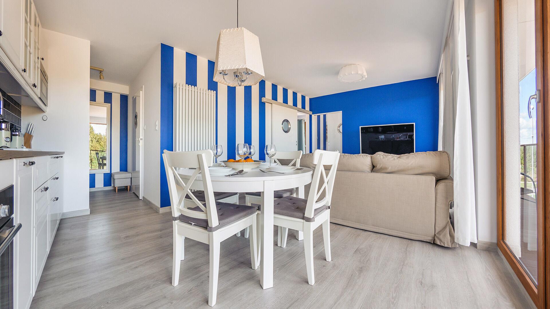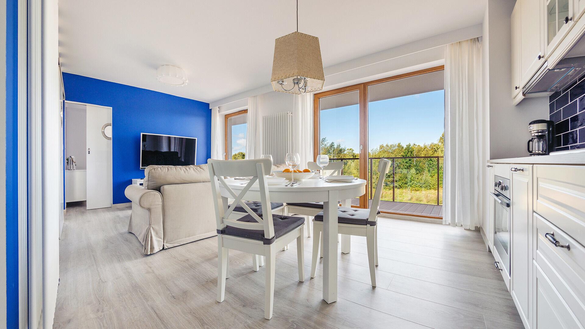Die Apartments im Resorts Kolobrzeg liegen im ruhigen, westlichen Teil der Stadt, umgeben vom NATURA-2000-Park und nur wenige Minuten vom breiten Weststrand sowie einem Hundestrand entfernt. Die Lage bietet saubere Luft, direkten Kontakt zur Natur und Zugang zu Rad- und Spazierwegen. Die Apartments sind hochwertig ausgestattet und verfügen über voll ausgestattete Küchenzeilen sowie große Terrassen. Auf dem Gelände stehen nummerierte Außenparkplätze und Tiefgaragenplätze gegen Aufpreis zur Verfügung, zudem gibt es einen öffentlichen, kostenpflichtigen Parkplatz vor dem Gebäude. Gästen stehen ein täglich geöffneter Pool sowie eine Sauna zur Verfügung. Kolobrzeg bietet das ganze Jahr über zahlreiche Freizeit- und Kulturangebote sowie eine vielfältige Gastronomie.