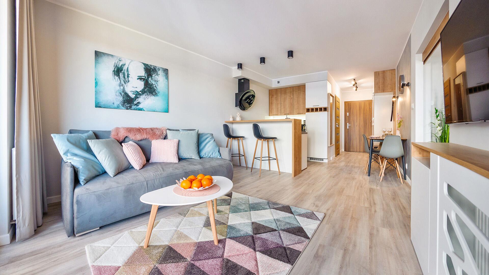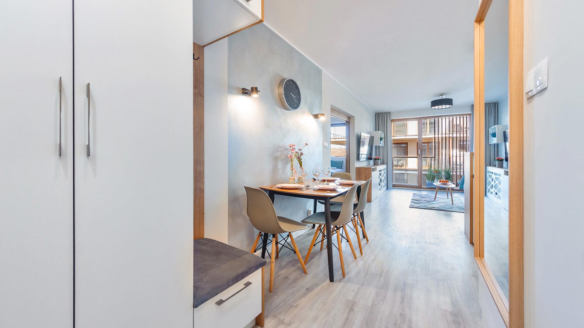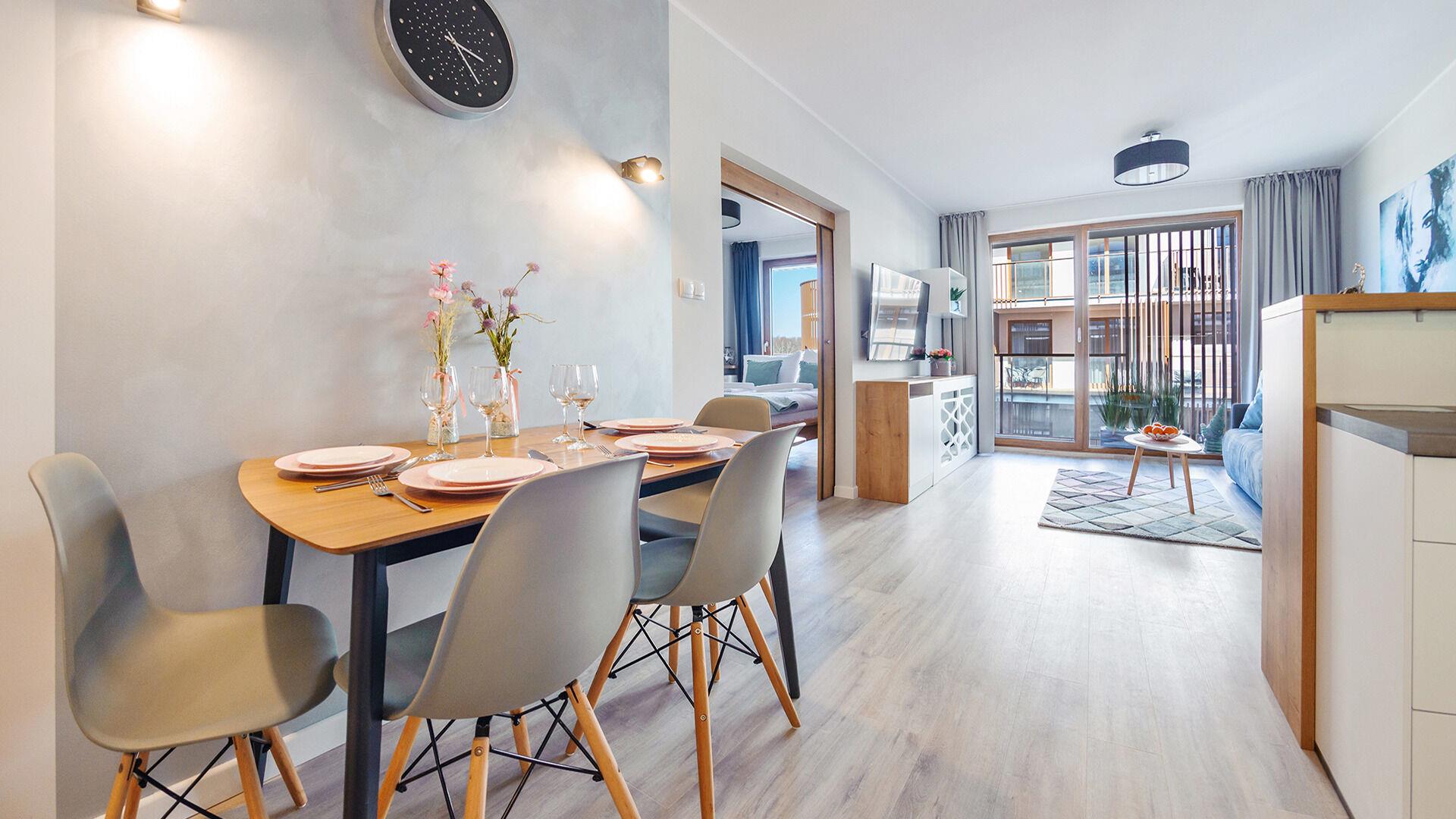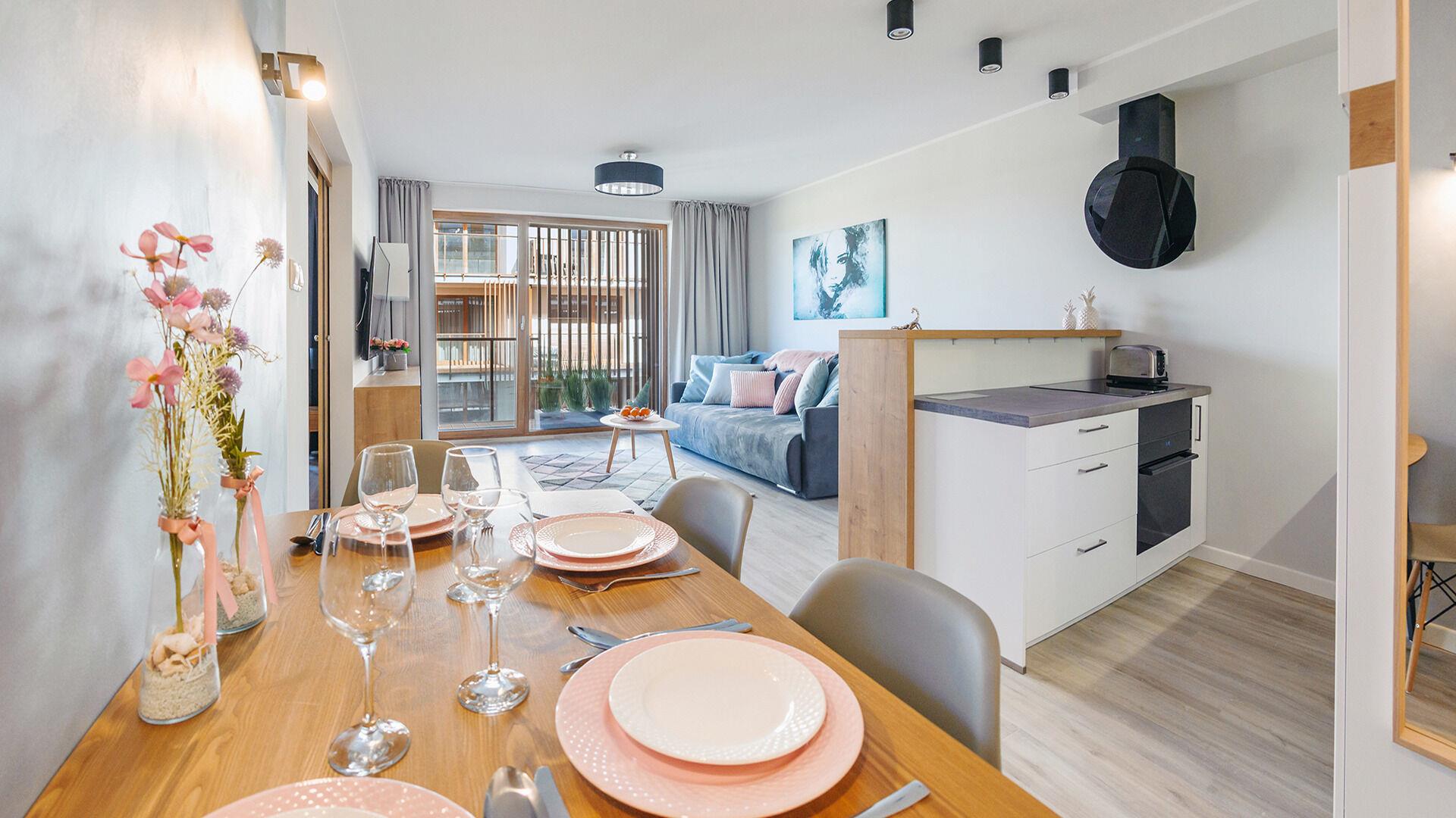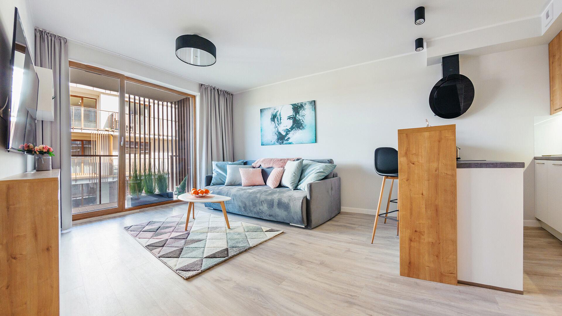 • Haustiere sind in der ausgewählten Wohnung erlaubt. Die Kosten für den Aufenthalt mit einem Haustier betragen 40 PLN pro Tag.