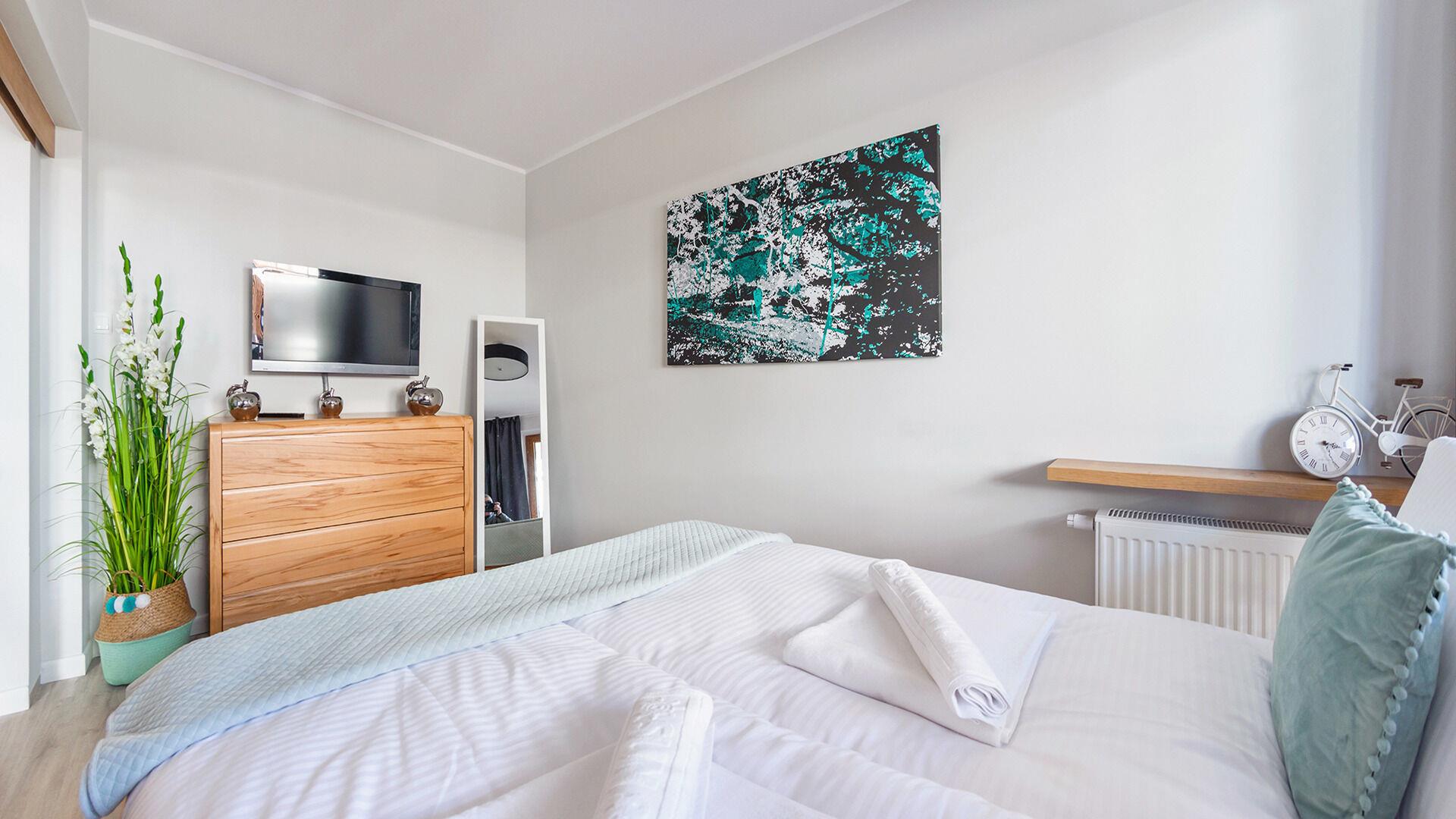 Die Apartments im Resorts Kolobrzeg liegen im ruhigen, westlichen Teil der Stadt, umgeben vom NATURA-2000-Park und nur wenige Minuten vom breiten Weststrand sowie einem Hundestrand entfernt. Die Lage bietet saubere Luft, direkten Kontakt zur Natur und Zugang zu Rad- und Spazierwegen. Die Apartments sind hochwertig ausgestattet und verfügen über voll ausgestattete Küchenzeilen sowie große Terrassen. Auf dem Gelände stehen nummerierte Außenparkplätze und Tiefgaragenplätze gegen Aufpreis zur Verfügung, zudem gibt es einen öffentlichen, kostenpflichtigen Parkplatz vor dem Gebäude. Gästen stehen ein täglich geöffneter Pool sowie eine Sauna zur Verfügung. Kolobrzeg bietet das ganze Jahr über zahlreiche Freizeit- und Kulturangebote sowie eine vielfältige Gastronomie.