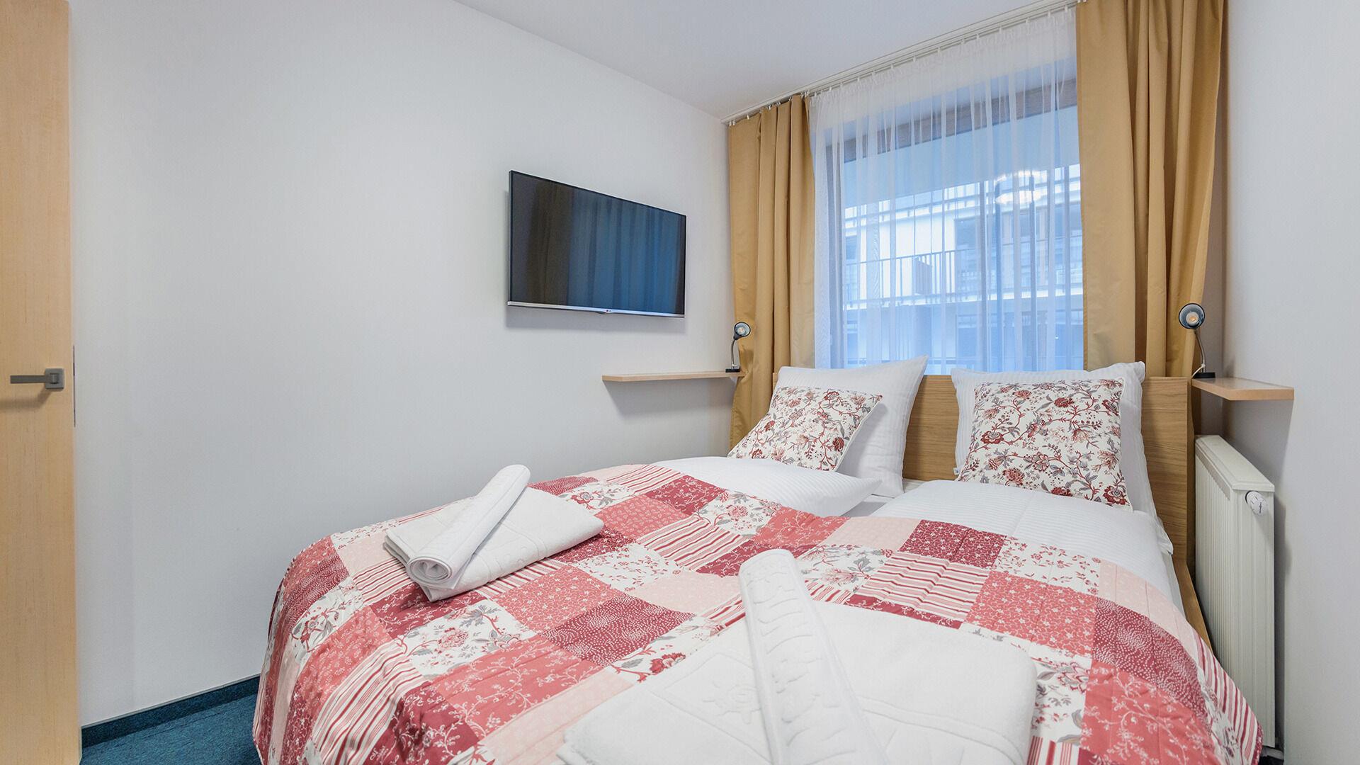Die Apartments im Objekt Resorts Kolobrzeg befinden sich im westlichen Teil von Kolobrzeg, abseits des städtischen Trubels, umgeben vom Grün des NATURA-2000-Parks. Diese Lage garantiert saubere Luft, malerische Ausblicke und direkten Kontakt zur Natur. Die Plazowa-Straße mit ihren breiten Gehwegen und Radwegen ist ein Teil der R10-Fahrradroute. Ein fünfminütiger Spaziergang über einen direkten Zugang zum Meer reicht aus, um den breiten, sandigen „Weststrand” zu erreichen; ganz in der Nähe befindet sich auch ein Hundestrand. Alle Apartments sind hochwertig ausgestattet und verfügen über funktionale, voll ausgestattete Küchenzeilen sowie geräumige Terrassen mit Blick auf den Innenhof oder das Grün des NATURA-2000-Parks. Vor dem Gebäude gibt es einen öffentlichen, kostenpflichtigen Stadtparkplatz (begrenzte Anzahl an Stellplätzen). Auf dem Gelände stehen ein nummerierter Außenparkplatz sowie Parkplätze in der Tiefgarage zur Verfügung, die den meisten Apartments zugeordnet sind und gegen Aufpreis genutzt werden können. Im Objekt befindet sich ein Schwimmbad, das täglich von 10:00 bis 21:00 Uhr geöffnet ist, sowie eine Sauna, die täglich von 16:00 bis 21:00 Uhr geöffnet ist. Der Pool befindet sich im Gebäude A; aus Gebäude B gibt es keinen direkten Zugang zu Gebäude A.
