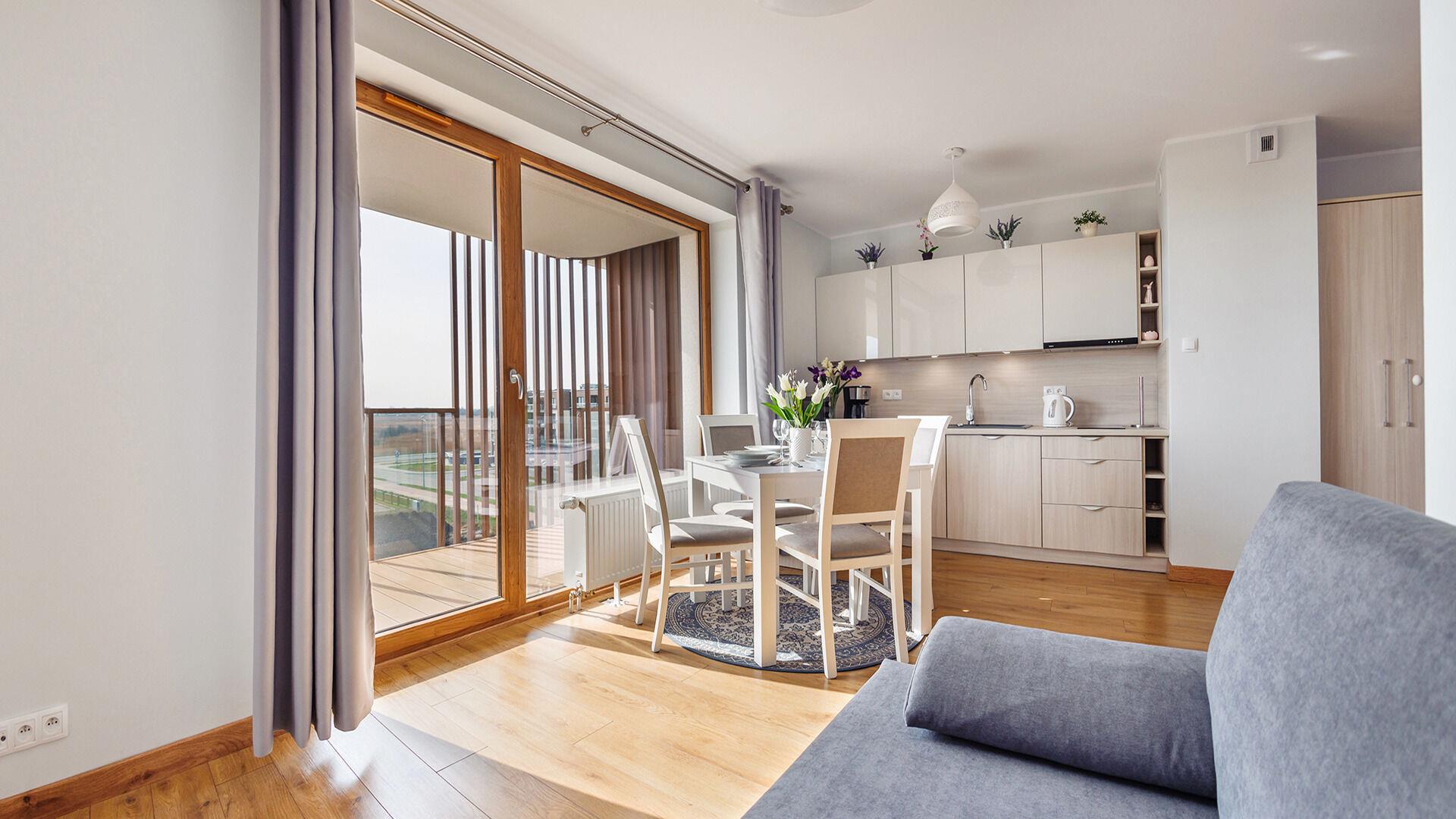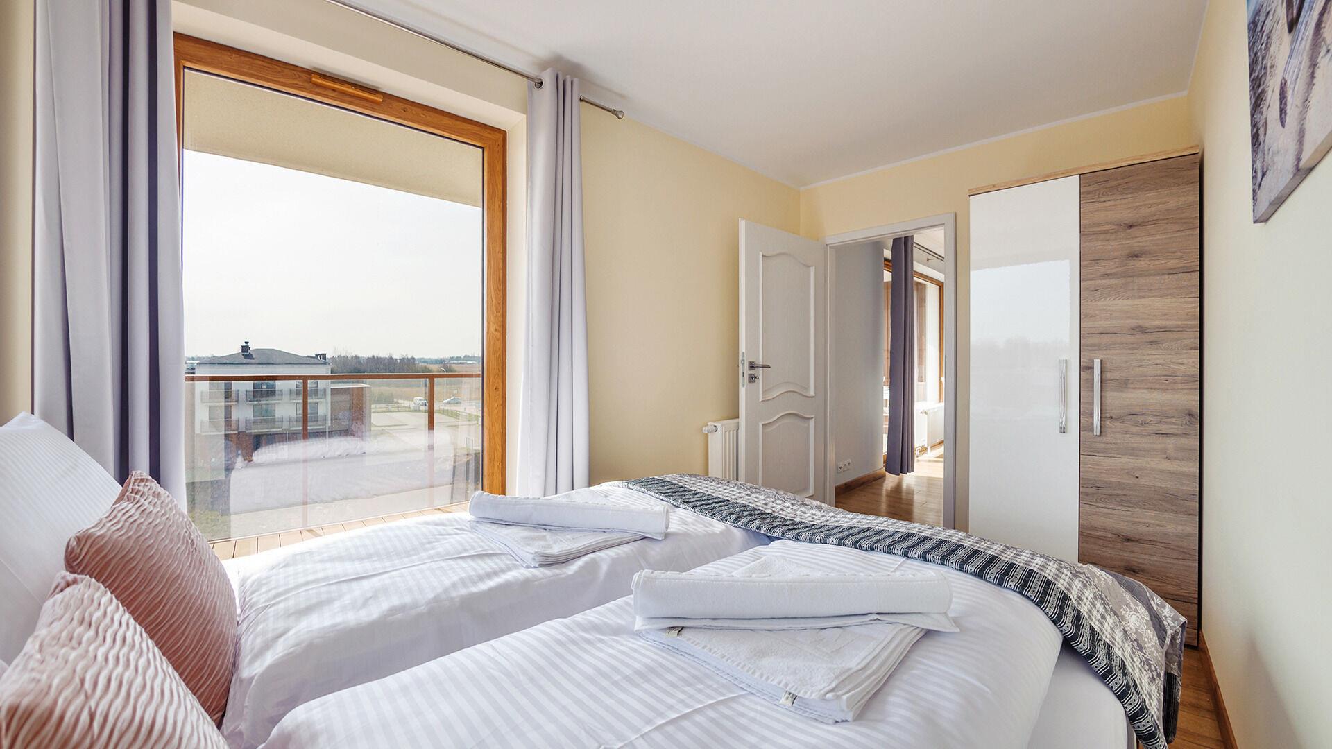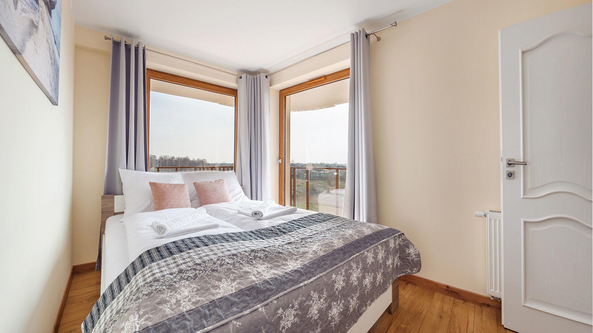 Die Apartments im Resorts Kolobrzeg liegen im ruhigen, westlichen Teil der Stadt, umgeben vom NATURA-2000-Park und nur wenige Minuten vom breiten Weststrand sowie einem Hundestrand entfernt. Die Lage bietet saubere Luft, direkten Kontakt zur Natur und Zugang zu Rad- und Spazierwegen. Die Apartments sind hochwertig ausgestattet und verfügen über voll ausgestattete Küchenzeilen sowie große Terrassen. Auf dem Gelände stehen nummerierte Außenparkplätze und Tiefgaragenplätze gegen Aufpreis zur Verfügung, zudem gibt es einen öffentlichen, kostenpflichtigen Parkplatz vor dem Gebäude. Gästen stehen ein täglich geöffneter Pool sowie eine Sauna zur Verfügung. Kolobrzeg bietet das ganze Jahr über zahlreiche Freizeit- und Kulturangebote sowie eine vielfältige Gastronomie.