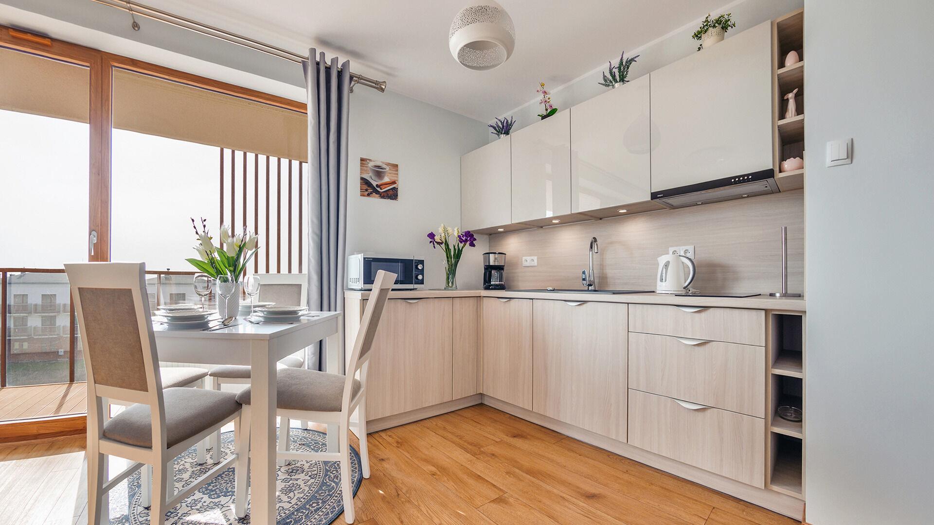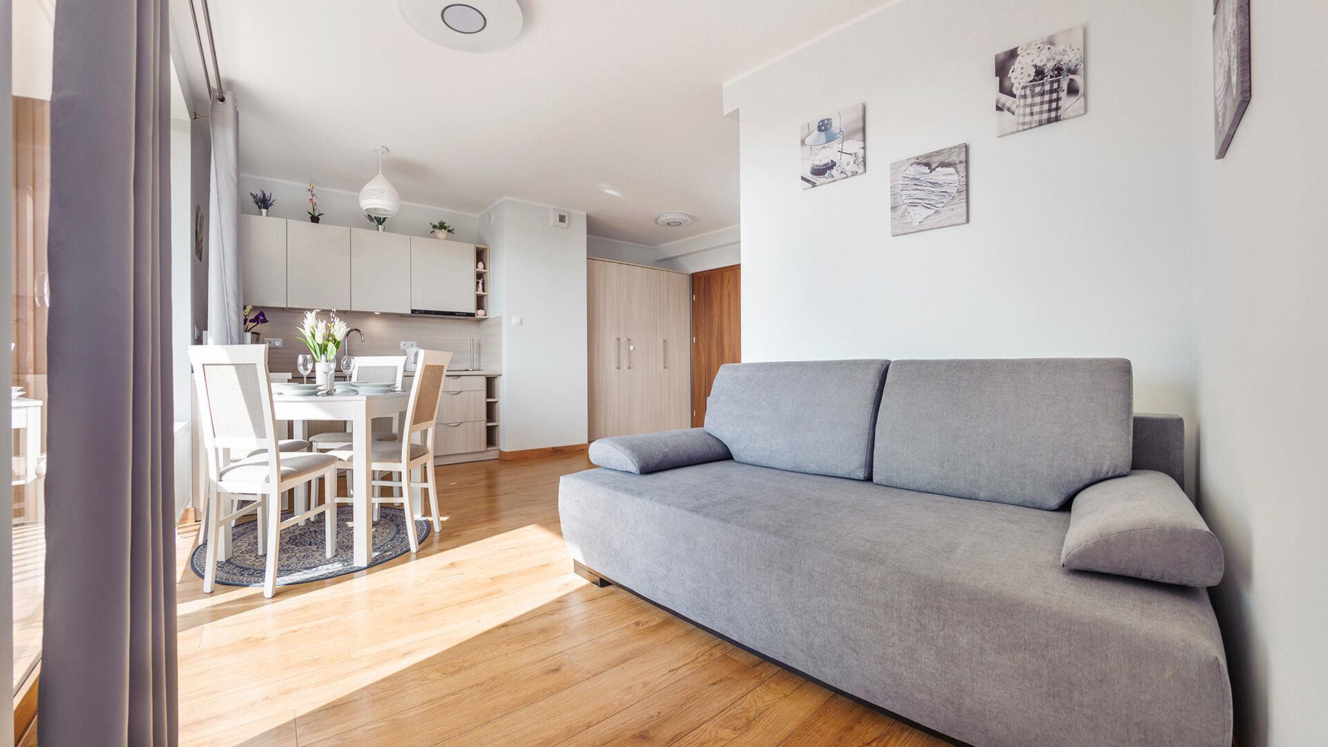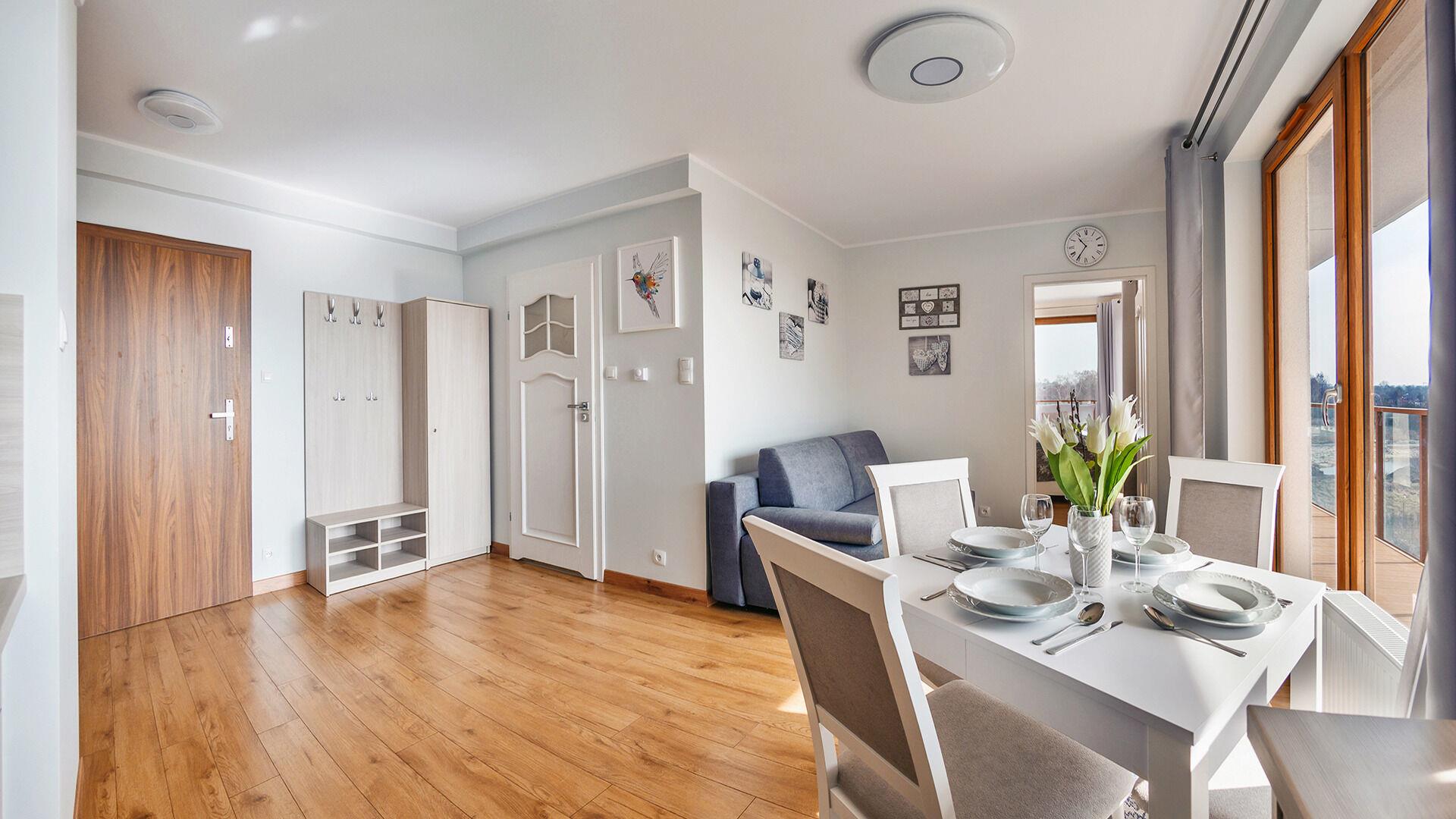 Die Apartments im Resorts Kolobrzeg liegen im ruhigen, westlichen Teil der Stadt, umgeben vom NATURA-2000-Park und nur wenige Minuten vom breiten Weststrand sowie einem Hundestrand entfernt. Die Lage bietet saubere Luft, direkten Kontakt zur Natur und Zugang zu Rad- und Spazierwegen. Die Apartments sind hochwertig ausgestattet und verfügen über voll ausgestattete Küchenzeilen sowie große Terrassen. Auf dem Gelände stehen nummerierte Außenparkplätze und Tiefgaragenplätze gegen Aufpreis zur Verfügung, zudem gibt es einen öffentlichen, kostenpflichtigen Parkplatz vor dem Gebäude. Gästen stehen ein täglich geöffneter Pool sowie eine Sauna zur Verfügung. Kolobrzeg bietet das ganze Jahr über zahlreiche Freizeit- und Kulturangebote sowie eine vielfältige Gastronomie.