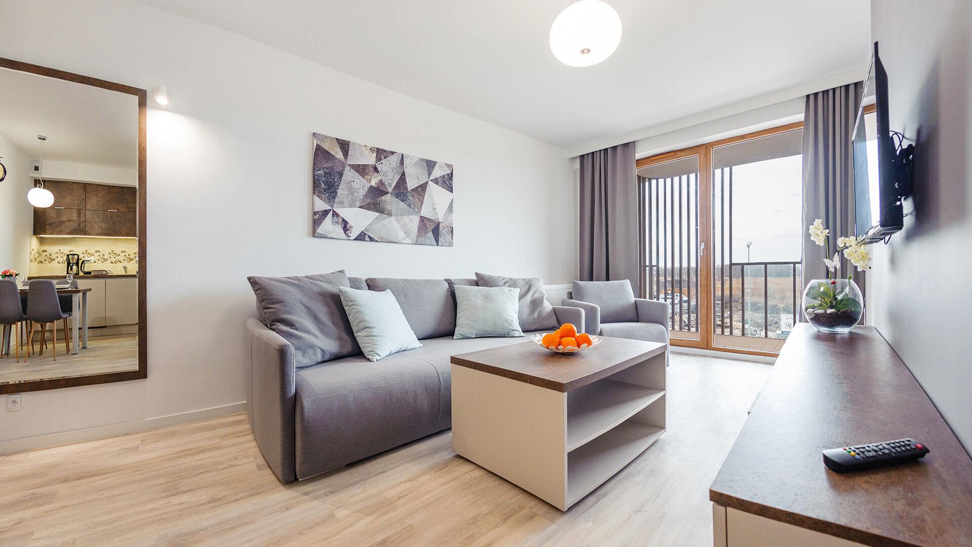Die Apartments im Objekt Resorts Kolobrzeg befinden sich im westlichen Teil von Kolobrzeg, abseits des städtischen Trubels, umgeben vom Grün des NATURA-2000-Parks. Diese Lage garantiert saubere Luft, malerische Ausblicke und direkten Kontakt zur Natur. Die Plazowa-Straße mit ihren breiten Gehwegen und Radwegen ist ein Teil der R10-Fahrradroute. Ein fünfminütiger Spaziergang über einen direkten Zugang zum Meer reicht aus, um den breiten, sandigen „Weststrand” zu erreichen; ganz in der Nähe befindet sich auch ein Hundestrand. Alle Apartments sind hochwertig ausgestattet und verfügen über funktionale, voll ausgestattete Küchenzeilen sowie geräumige Terrassen mit Blick auf den Innenhof oder das Grün des NATURA-2000-Parks. Vor dem Gebäude gibt es einen öffentlichen, kostenpflichtigen Stadtparkplatz (begrenzte Anzahl an Stellplätzen). Auf dem Gelände stehen ein nummerierter Außenparkplatz sowie Parkplätze in der Tiefgarage zur Verfügung, die den meisten Apartments zugeordnet sind und gegen Aufpreis genutzt werden können. Im Objekt befindet sich ein Schwimmbad, das täglich von 10:00 bis 21:00 Uhr geöffnet ist, sowie eine Sauna, die täglich von 16:00 bis 21:00 Uhr geöffnet ist. Der Pool befindet sich im Gebäude A; aus Gebäude B gibt es keinen direkten Zugang zu Gebäude A.