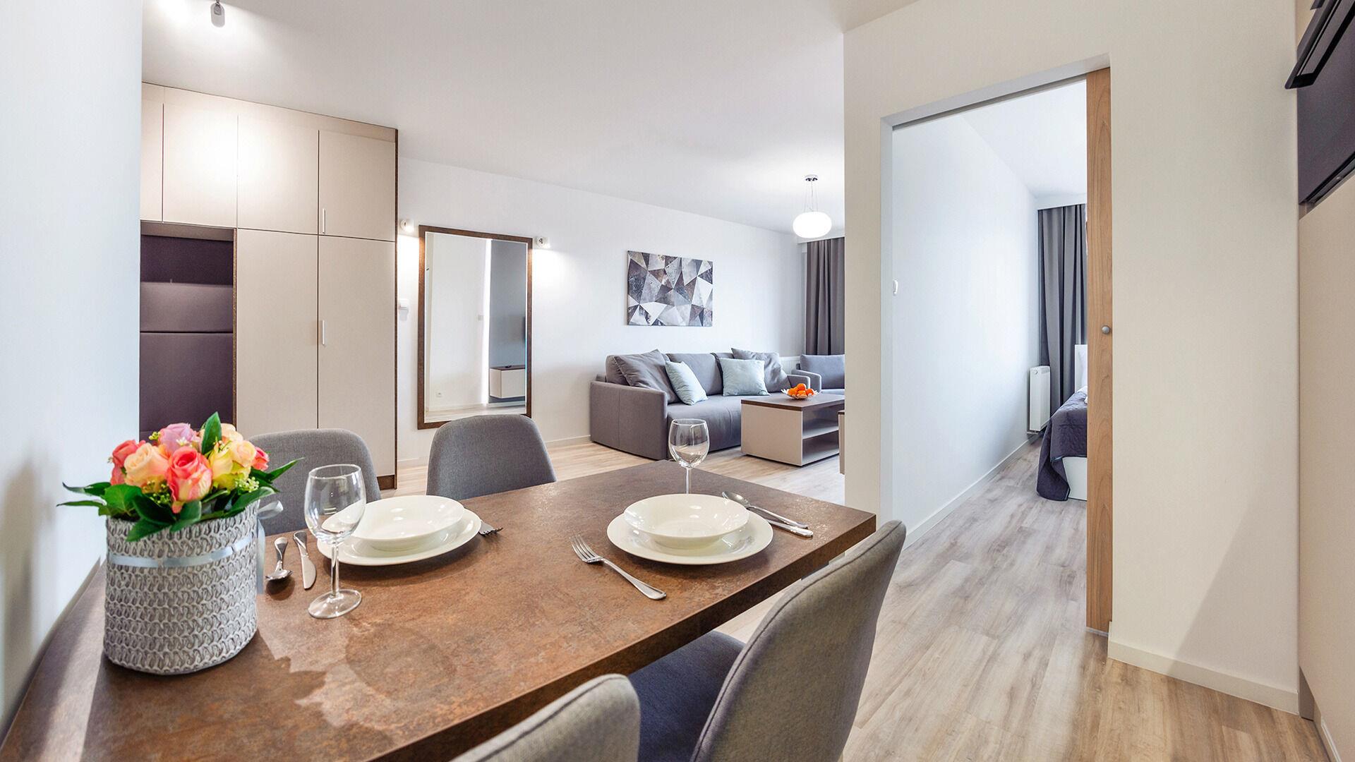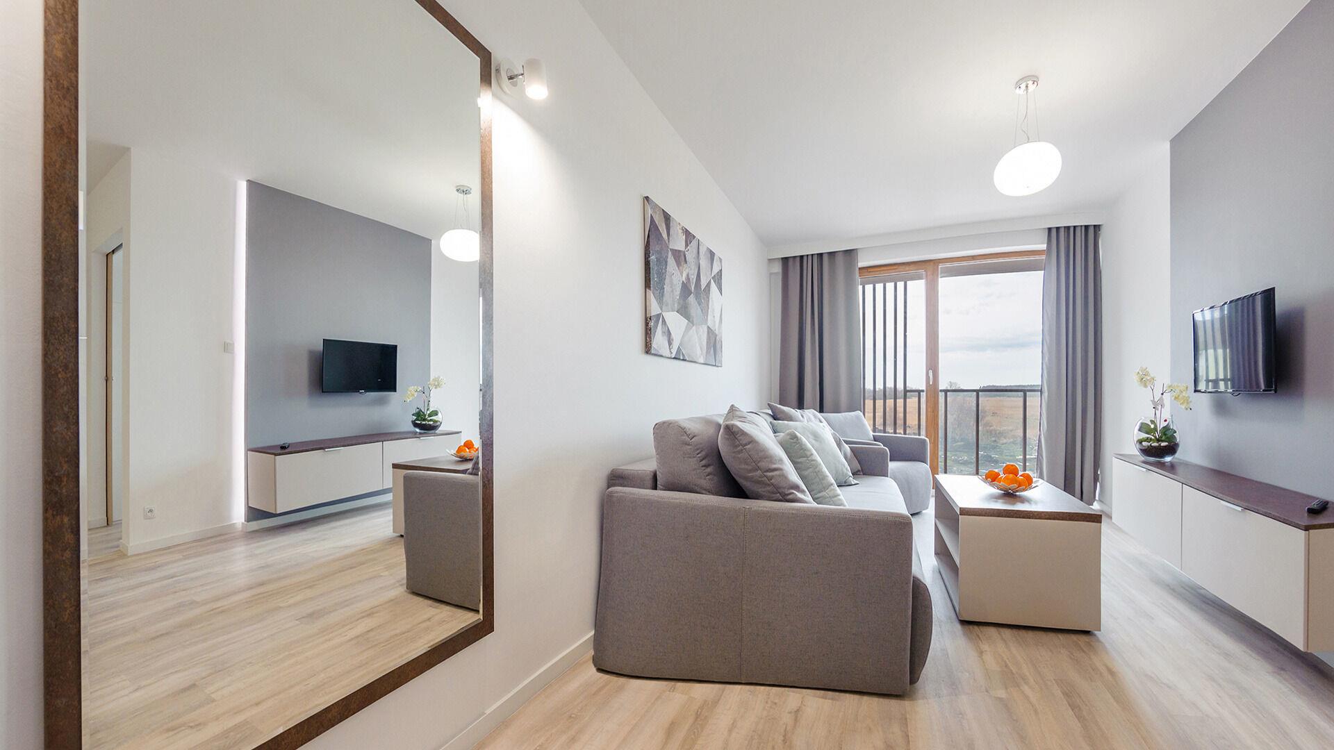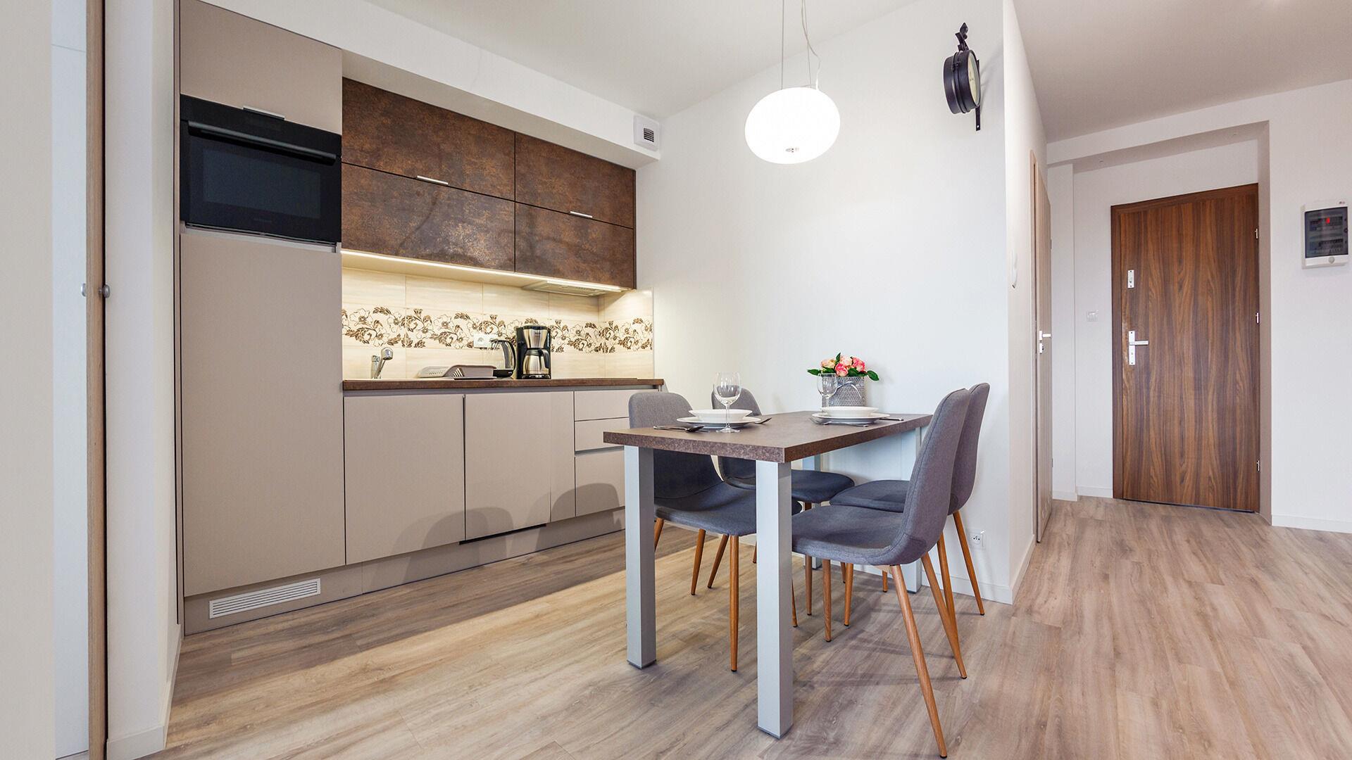 • Haustiere sind in der ausgewählten Wohnung erlaubt. Die Kosten für den Aufenthalt mit einem Haustier betragen 40 PLN pro Tag.