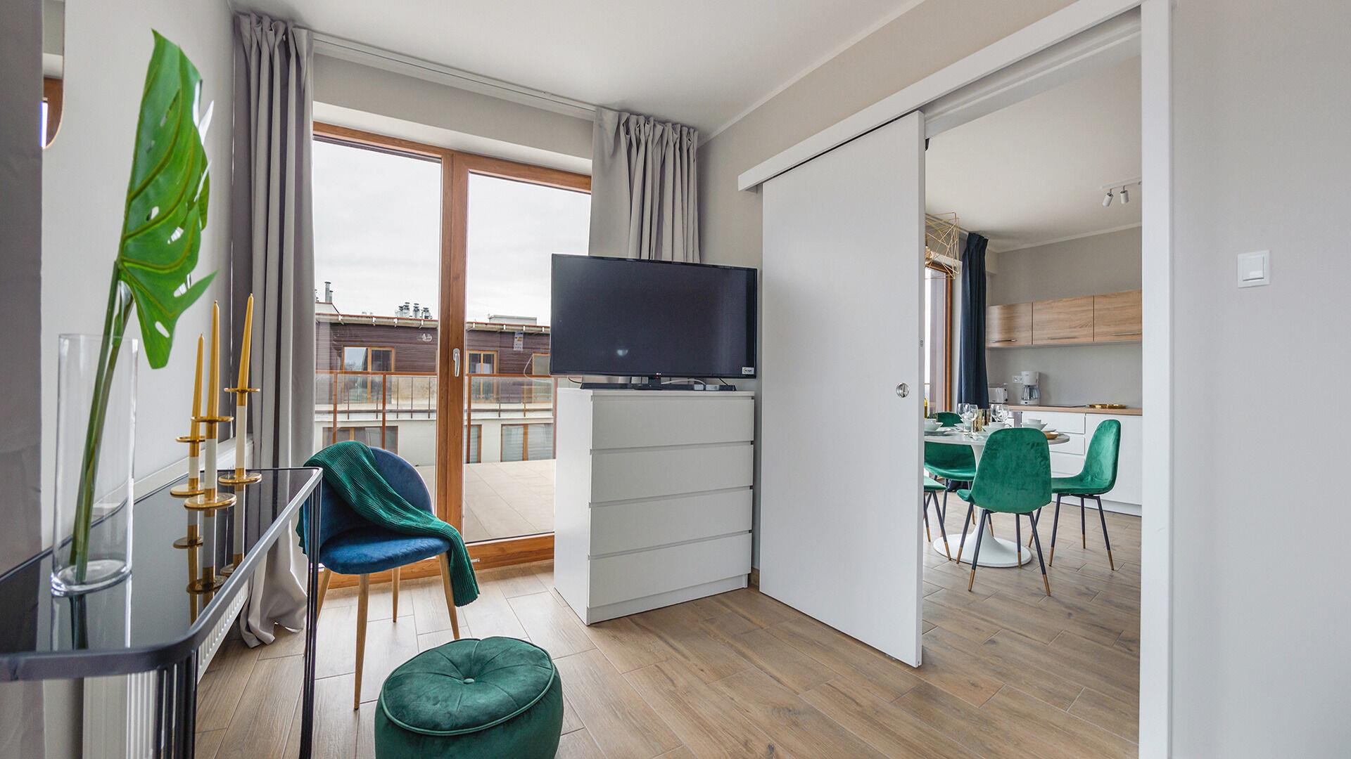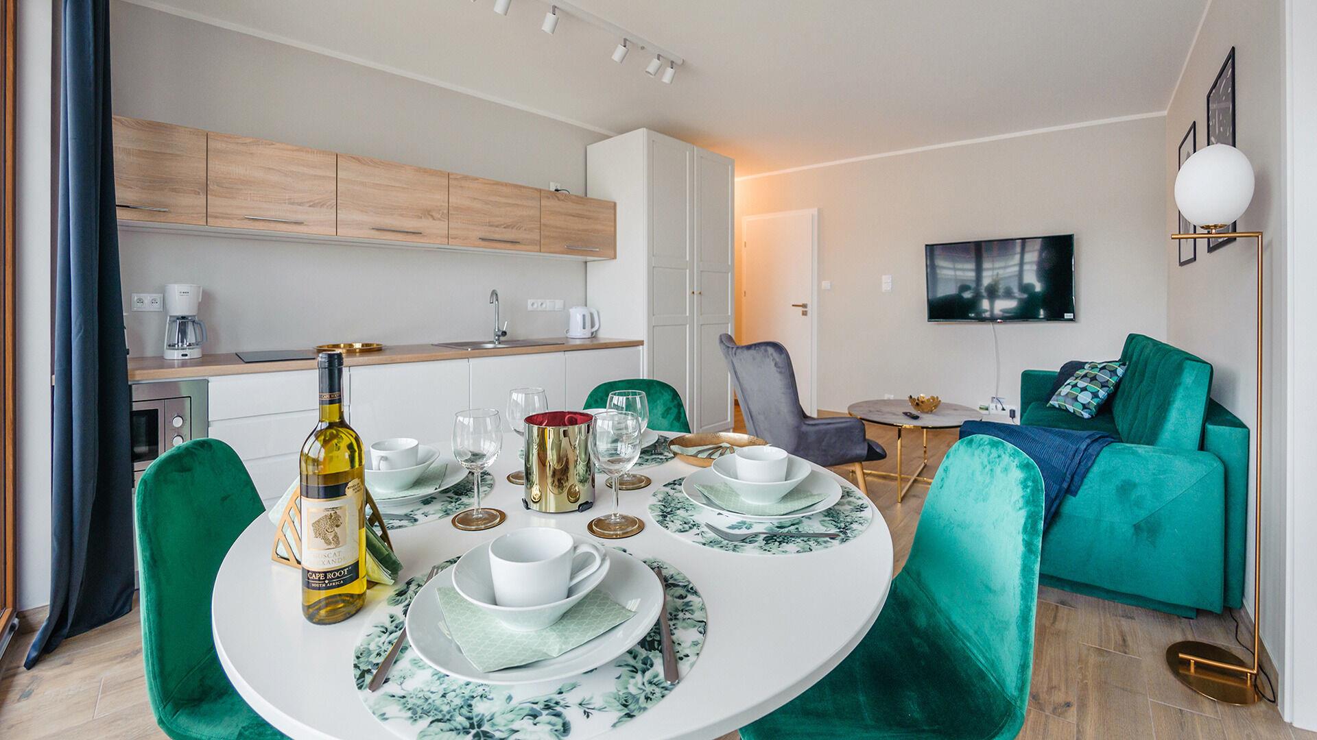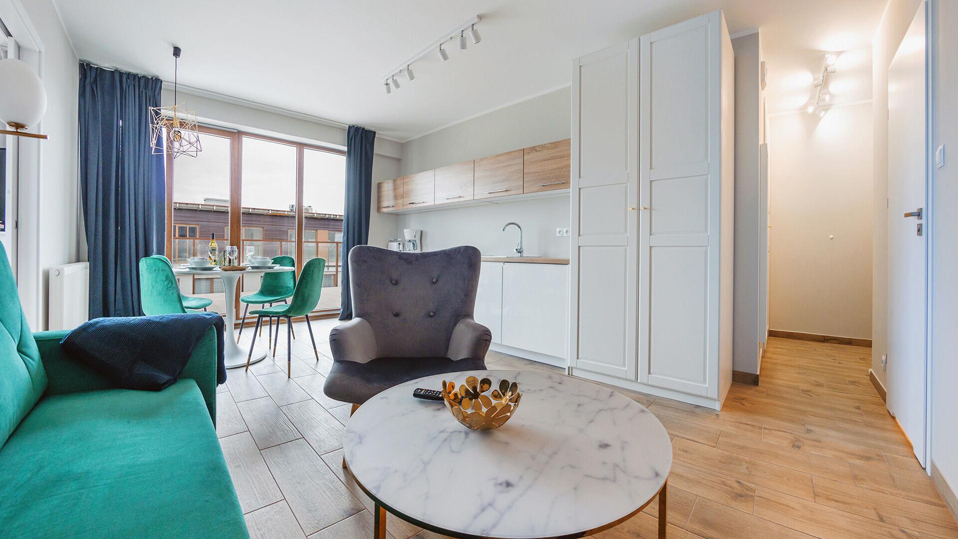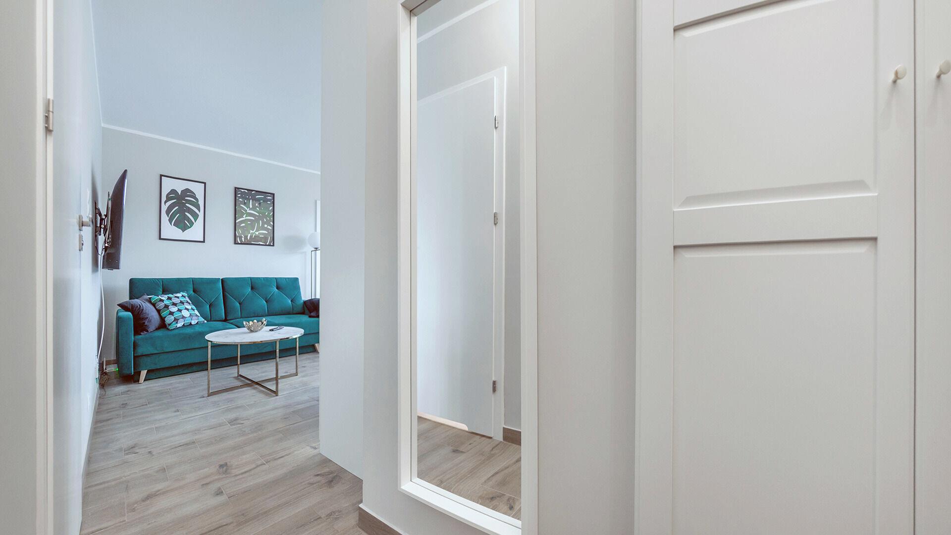 • Haustiere sind in der ausgewählten Wohnung erlaubt. Die Kosten für den Aufenthalt mit einem Haustier betragen 40 PLN pro Tag.