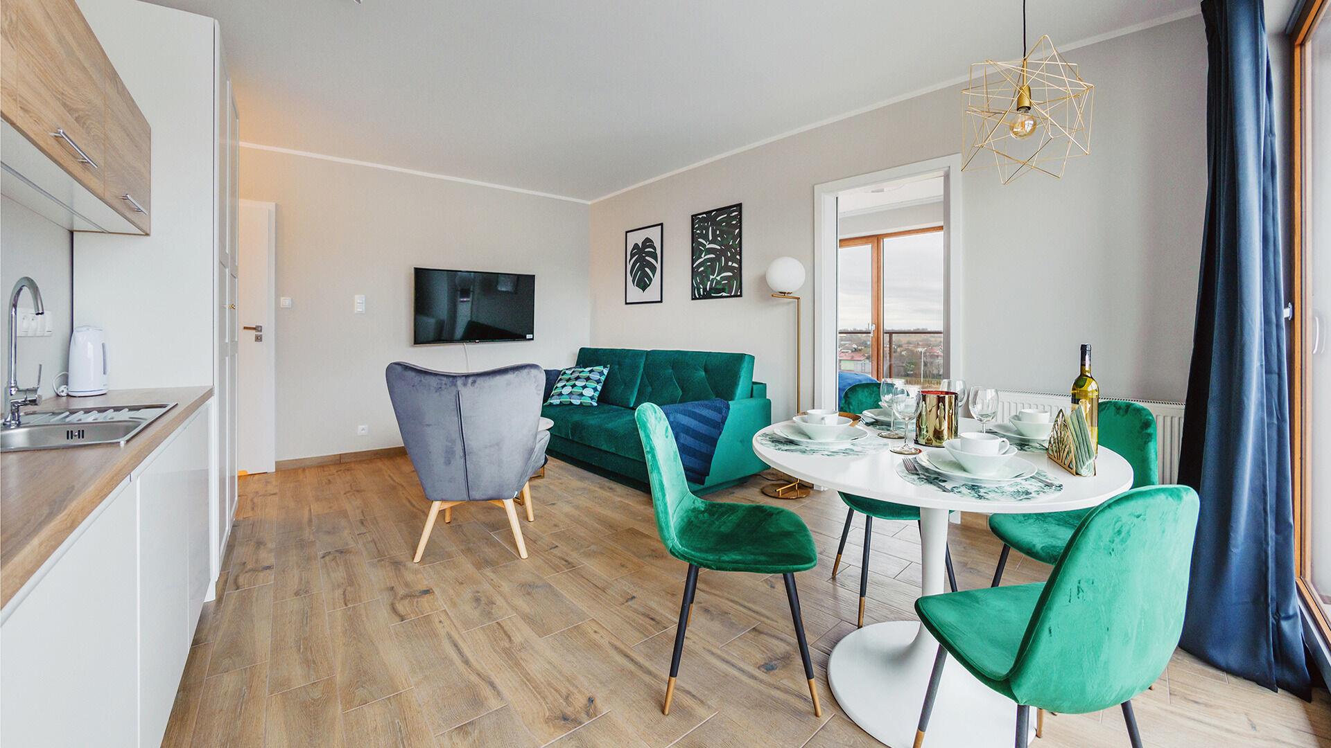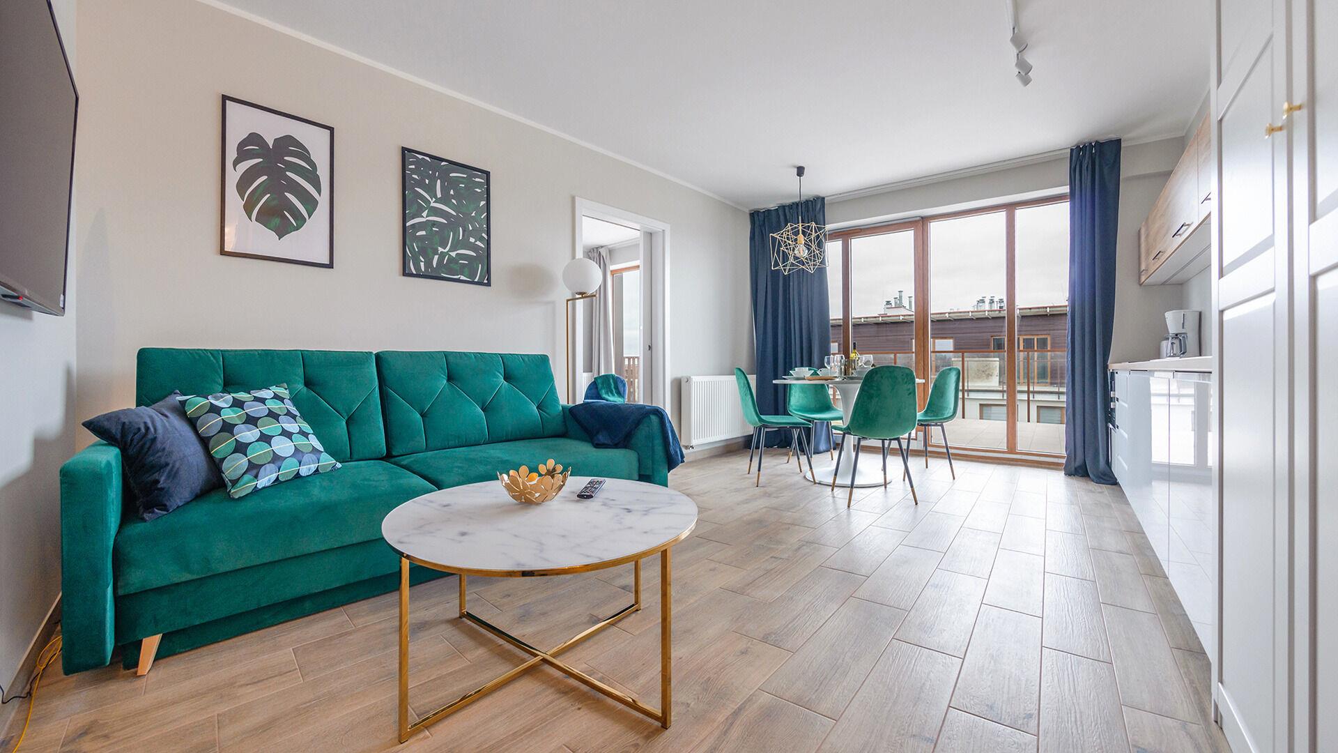 Die Apartments im Resorts Kolobrzeg liegen im ruhigen, westlichen Teil der Stadt, umgeben vom NATURA-2000-Park und nur wenige Minuten vom breiten Weststrand sowie einem Hundestrand entfernt. Die Lage bietet saubere Luft, direkten Kontakt zur Natur und Zugang zu Rad- und Spazierwegen. Die Apartments sind hochwertig ausgestattet und verfügen über voll ausgestattete Küchenzeilen sowie große Terrassen. Auf dem Gelände stehen nummerierte Außenparkplätze und Tiefgaragenplätze gegen Aufpreis zur Verfügung, zudem gibt es einen öffentlichen, kostenpflichtigen Parkplatz vor dem Gebäude. Gästen stehen ein täglich geöffneter Pool sowie eine Sauna zur Verfügung. Kolobrzeg bietet das ganze Jahr über zahlreiche Freizeit- und Kulturangebote sowie eine vielfältige Gastronomie.