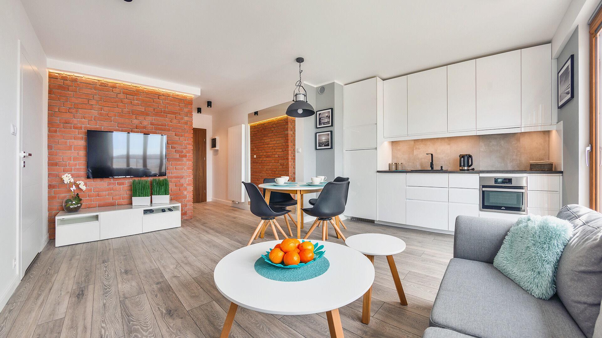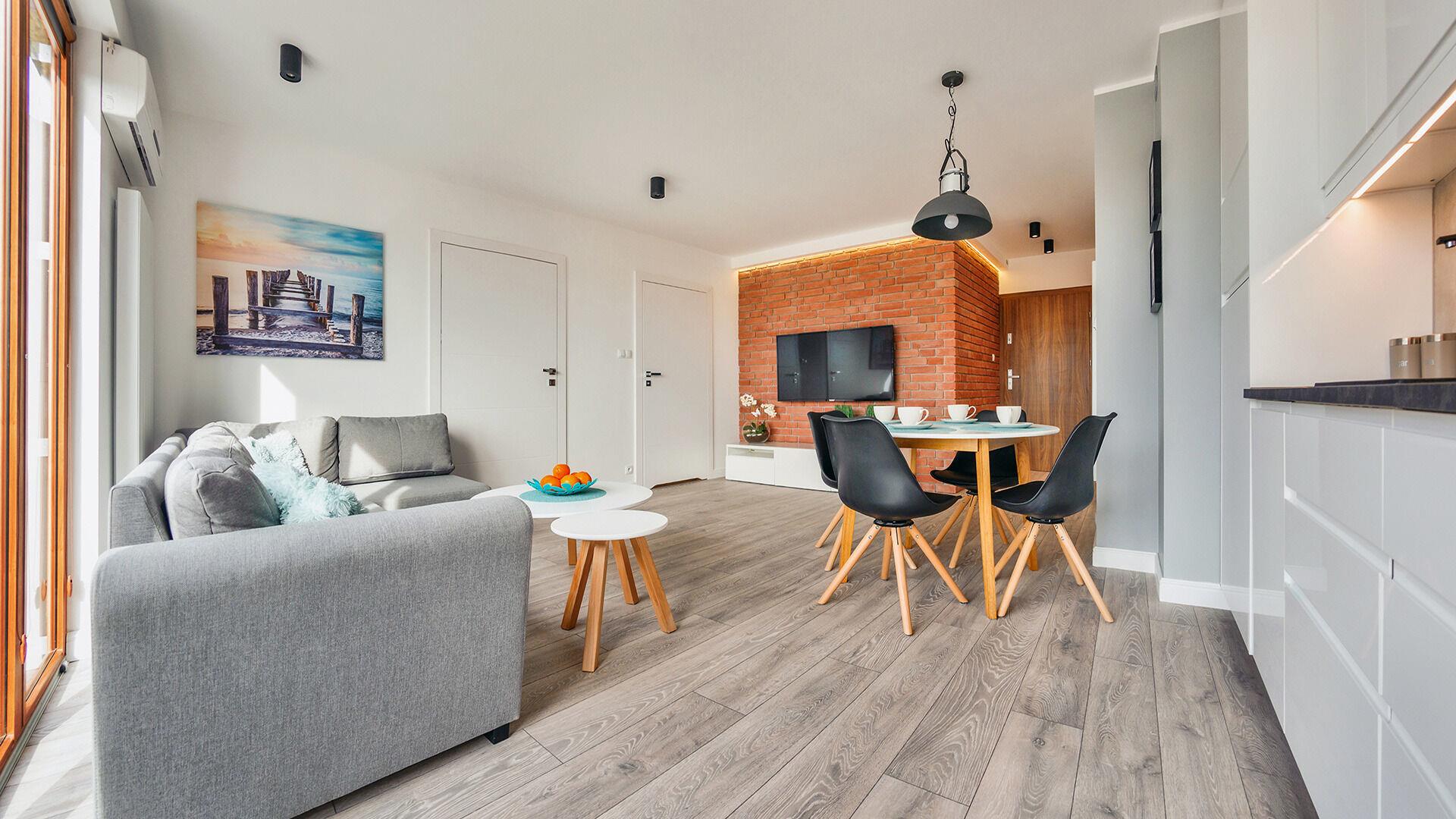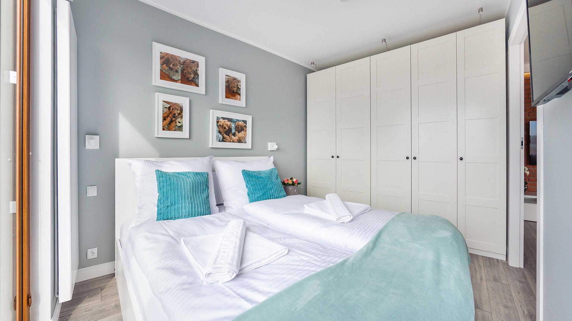 • Haustiere sind in der ausgewählten Wohnung erlaubt. Die Kosten für den Aufenthalt mit einem Haustier betragen 40 PLN pro Tag.