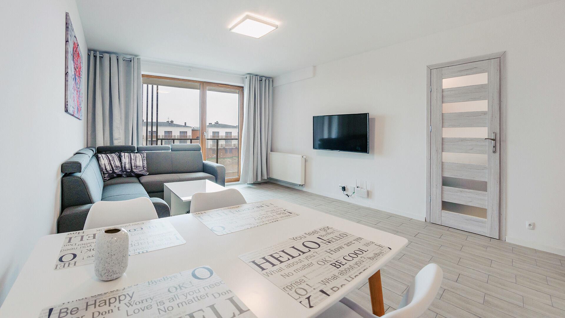 • Haustiere sind in der ausgewählten Wohnung erlaubt. Die Kosten für den Aufenthalt mit einem Haustier betragen 40 PLN pro Tag.