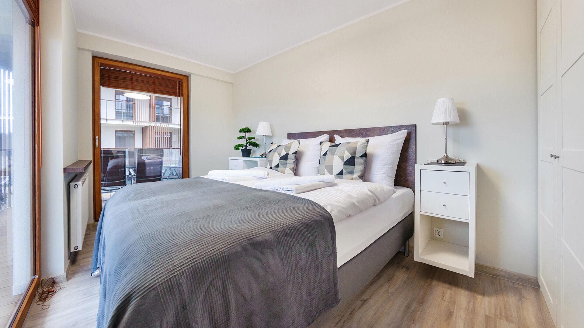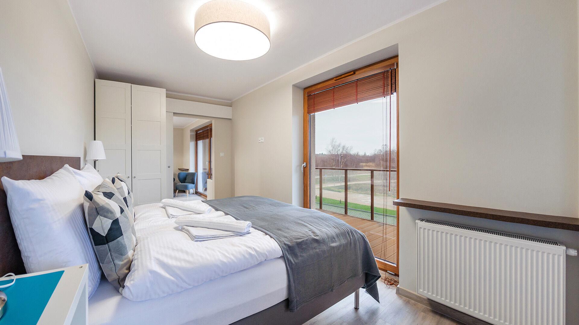 Die Apartments im Resorts Kolobrzeg liegen im ruhigen, westlichen Teil der Stadt, umgeben vom NATURA-2000-Park und nur wenige Minuten vom breiten Weststrand sowie einem Hundestrand entfernt. Die Lage bietet saubere Luft, direkten Kontakt zur Natur und Zugang zu Rad- und Spazierwegen. Die Apartments sind hochwertig ausgestattet und verfügen über voll ausgestattete Küchenzeilen sowie große Terrassen. Auf dem Gelände stehen nummerierte Außenparkplätze und Tiefgaragenplätze gegen Aufpreis zur Verfügung, zudem gibt es einen öffentlichen, kostenpflichtigen Parkplatz vor dem Gebäude. Gästen stehen ein täglich geöffneter Pool sowie eine Sauna zur Verfügung. Kolobrzeg bietet das ganze Jahr über zahlreiche Freizeit- und Kulturangebote sowie eine vielfältige Gastronomie.