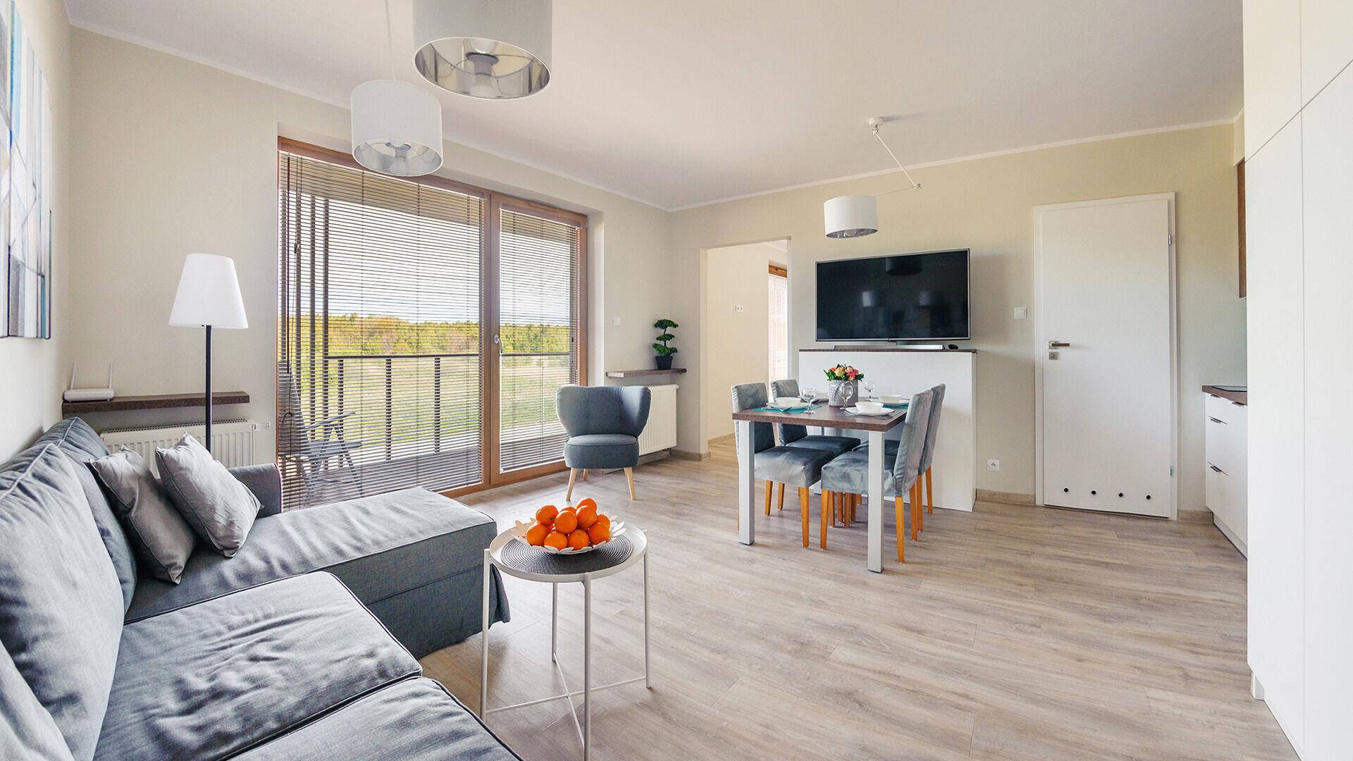 • Haustiere sind in der ausgewählten Wohnung erlaubt. Die Kosten für den Aufenthalt mit einem Haustier betragen 40 PLN pro Tag.