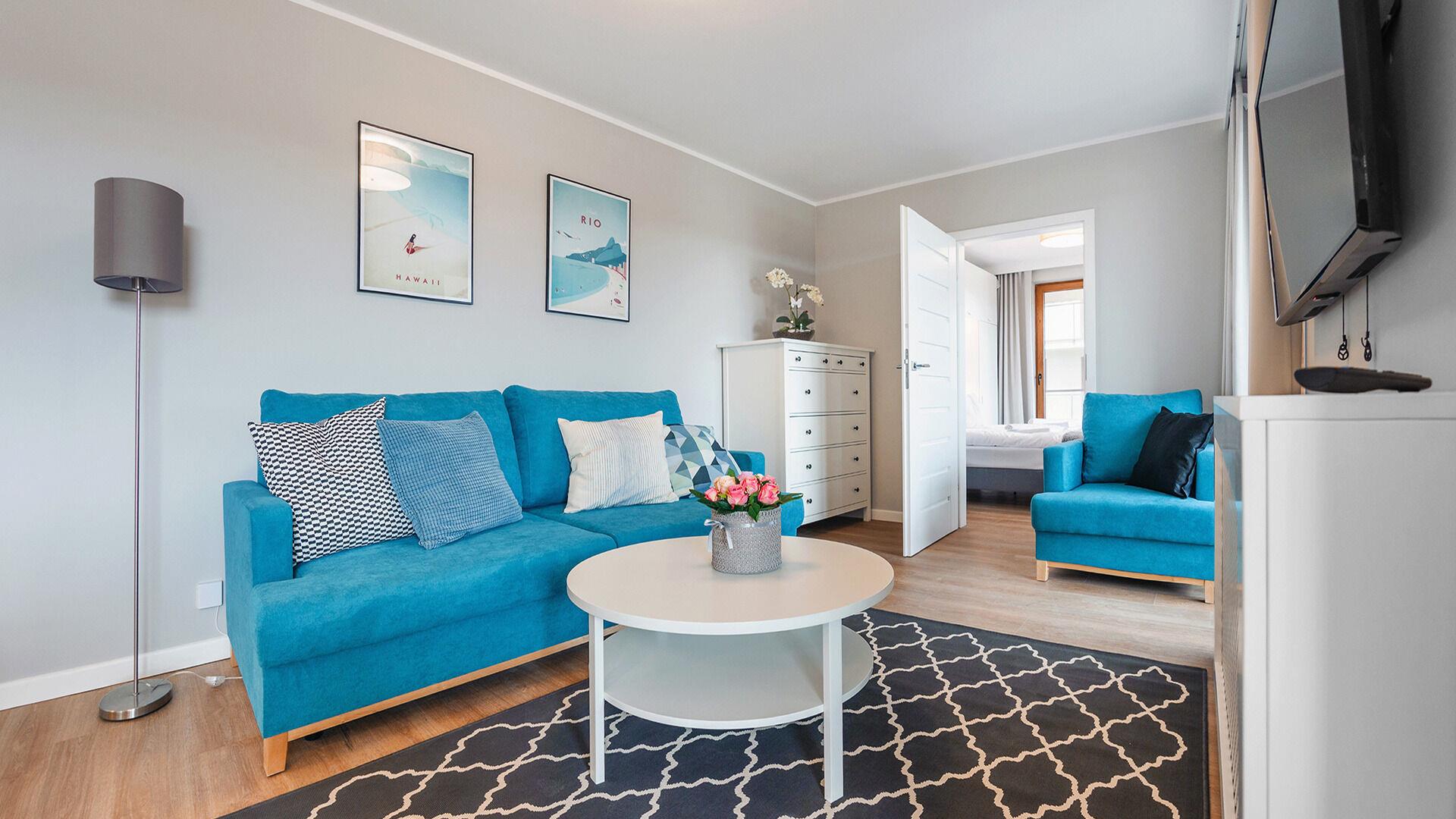 • Haustiere sind in der ausgewählten Wohnung erlaubt. Die Kosten für den Aufenthalt mit einem Haustier betragen 40 PLN pro Tag.