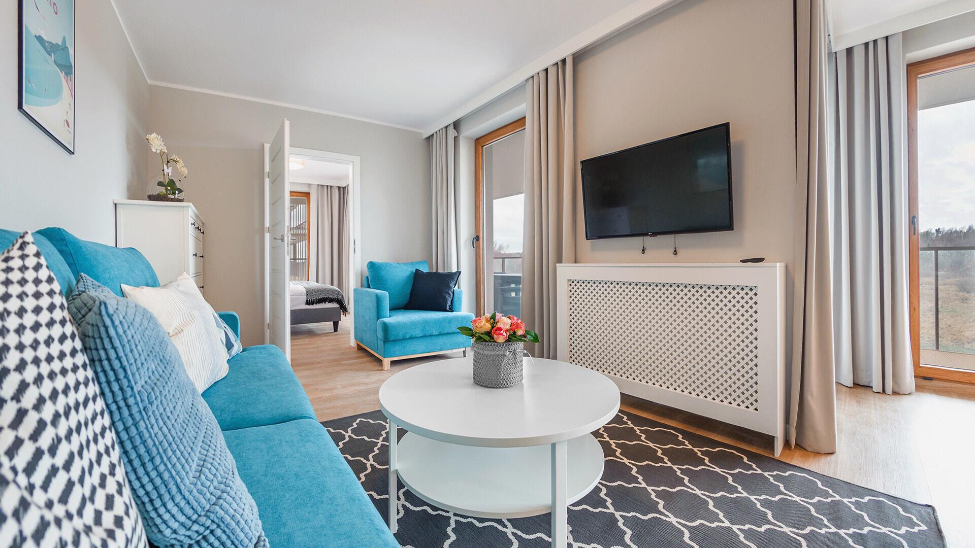 Die Apartments im Objekt Resorts Kolobrzeg befinden sich im westlichen Teil von Kolobrzeg, abseits des städtischen Trubels, umgeben vom Grün des NATURA-2000-Parks. Diese Lage garantiert saubere Luft, malerische Ausblicke und direkten Kontakt zur Natur. Die Plazowa-Straße mit ihren breiten Gehwegen und Radwegen ist ein Teil der R10-Fahrradroute. Ein fünfminütiger Spaziergang über einen direkten Zugang zum Meer reicht aus, um den breiten, sandigen „Weststrand” zu erreichen; ganz in der Nähe befindet sich auch ein Hundestrand. Alle Apartments sind hochwertig ausgestattet und verfügen über funktionale, voll ausgestattete Küchenzeilen sowie geräumige Terrassen mit Blick auf den Innenhof oder das Grün des NATURA-2000-Parks. Vor dem Gebäude gibt es einen öffentlichen, kostenpflichtigen Stadtparkplatz (begrenzte Anzahl an Stellplätzen). Auf dem Gelände stehen ein nummerierter Außenparkplatz sowie Parkplätze in der Tiefgarage zur Verfügung, die den meisten Apartments zugeordnet sind und gegen Aufpreis genutzt werden können. Im Objekt befindet sich ein Schwimmbad, das täglich von 10:00 bis 21:00 Uhr geöffnet ist, sowie eine Sauna, die täglich von 16:00 bis 21:00 Uhr geöffnet ist. Der Pool befindet sich im Gebäude A; aus Gebäude B gibt es keinen direkten Zugang zu Gebäude A.