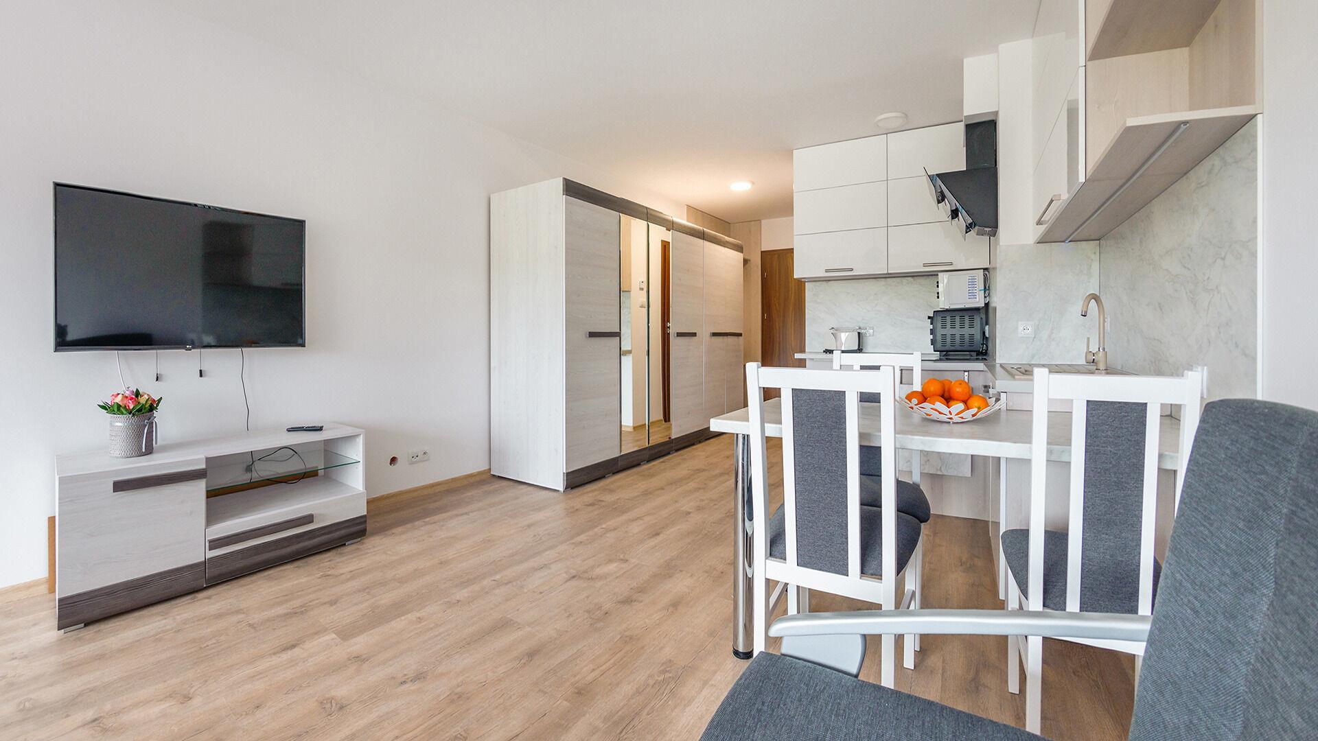 • Die Apartments sind mit Bettwäsche und Handtüchern ausgestattet.