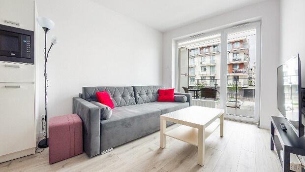 • Haustiere sind in der ausgewählten Wohnung erlaubt. Die Kosten für den Aufenthalt mit einem Haustier betragen 40 PLN pro Tag.