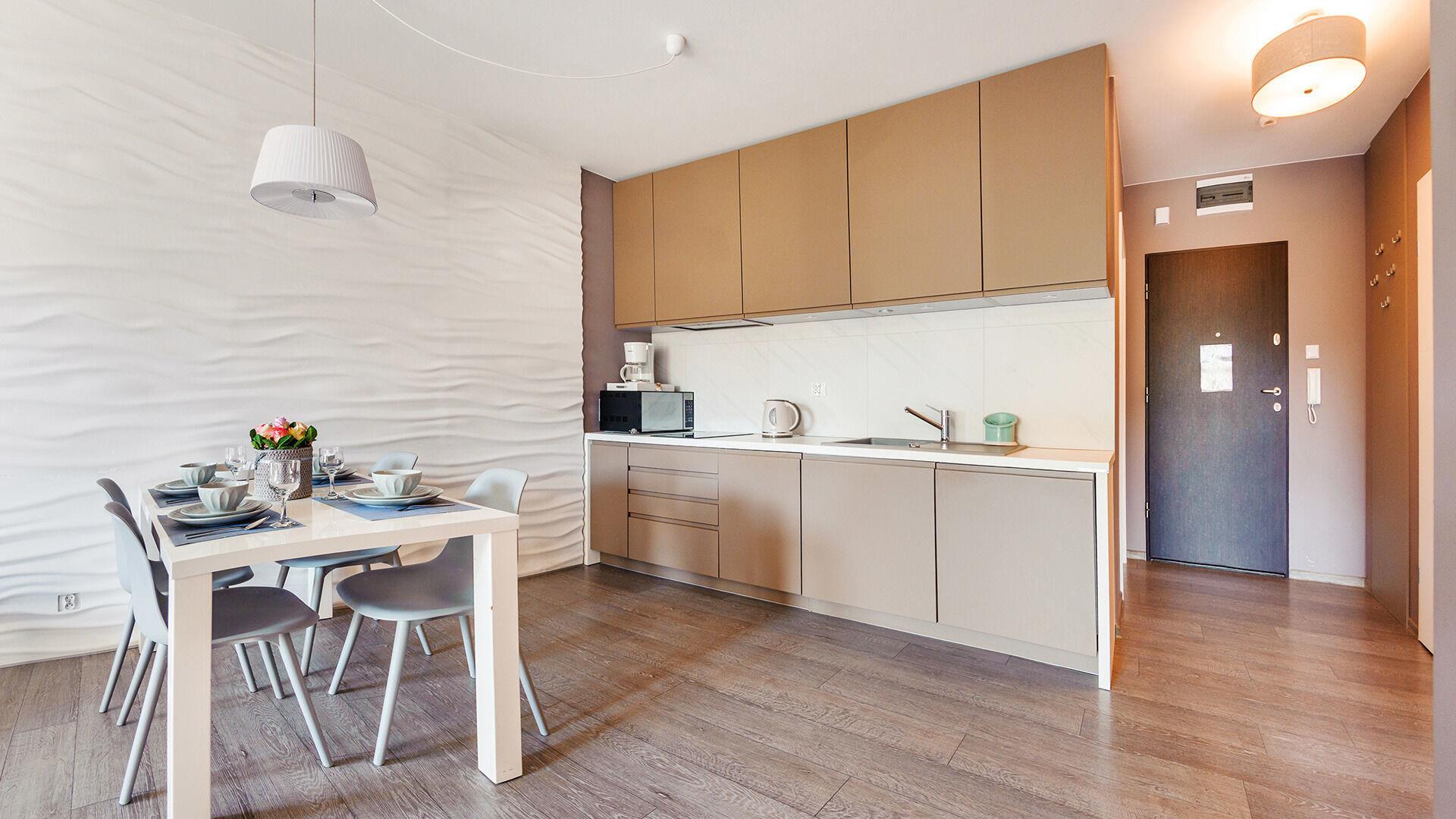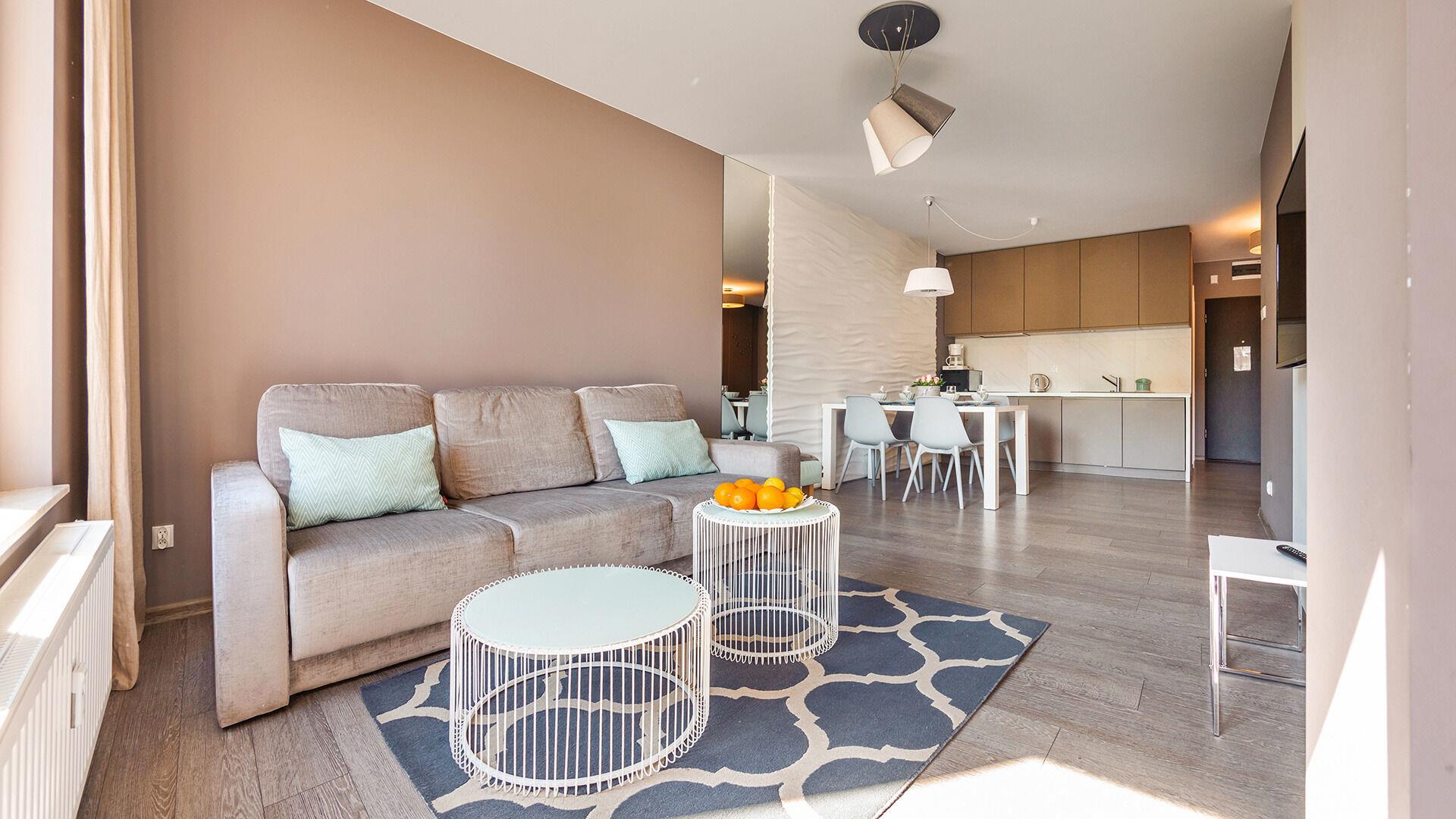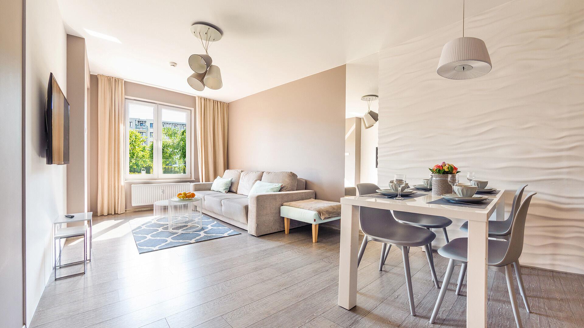 • Haustiere sind in der ausgewählten Wohnung erlaubt. Die Kosten für den Aufenthalt mit einem Haustier betragen 40 PLN pro Tag.