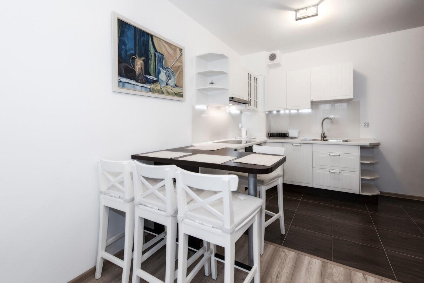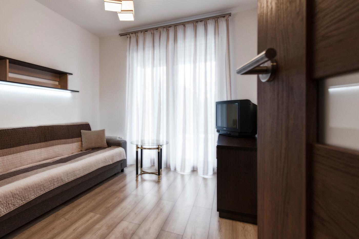 • Haustiere sind in der ausgewählten Wohnung erlaubt. Die Kosten für den Aufenthalt mit einem Haustier betragen 40 PLN pro Tag.