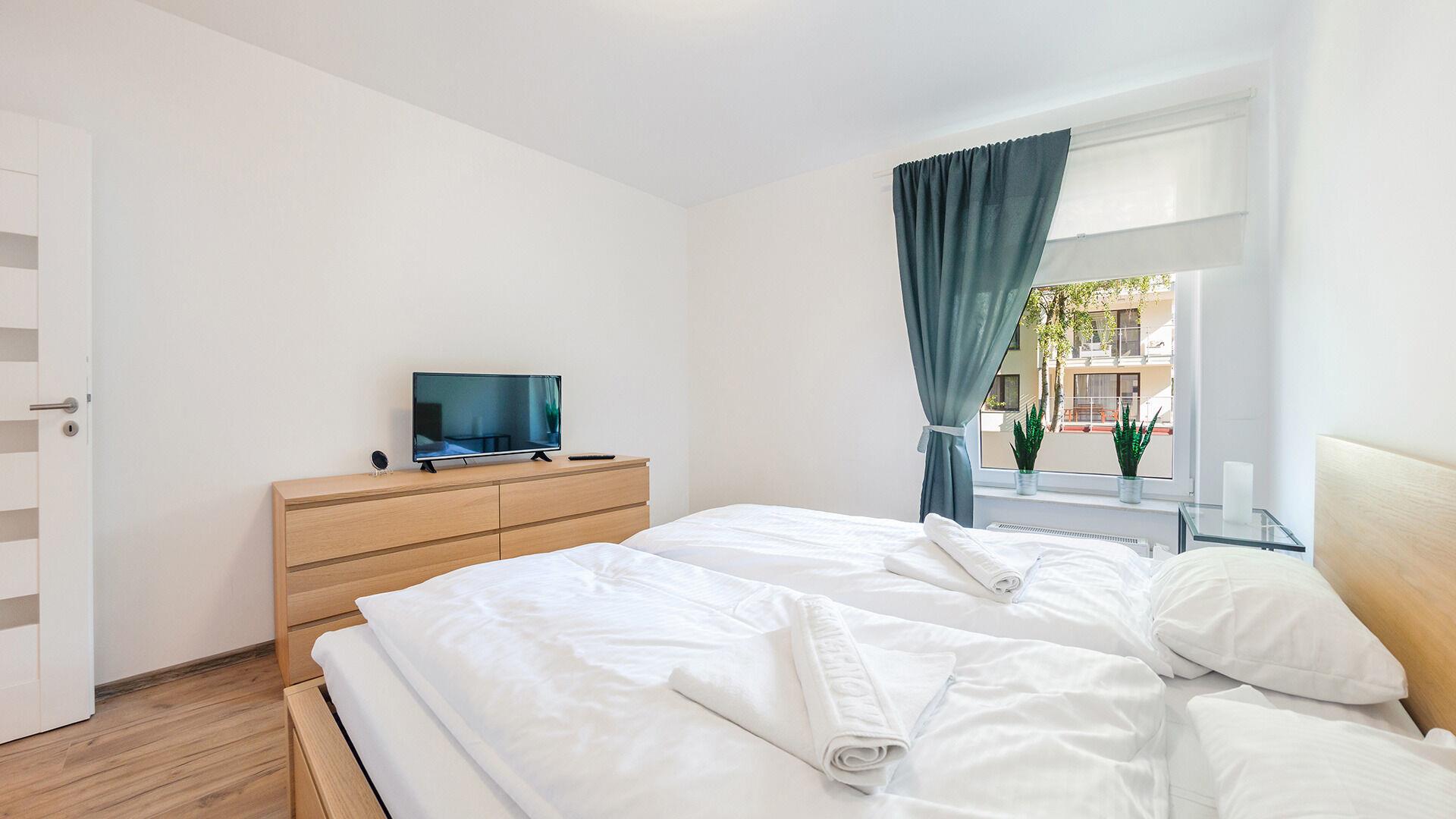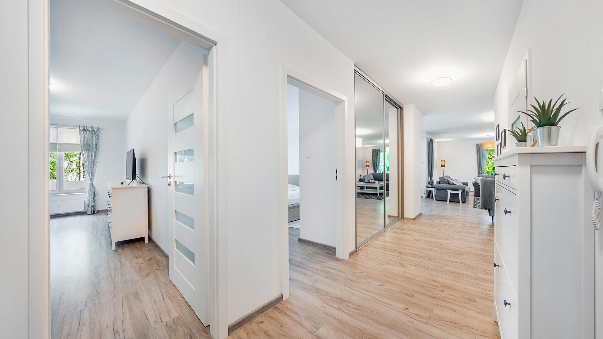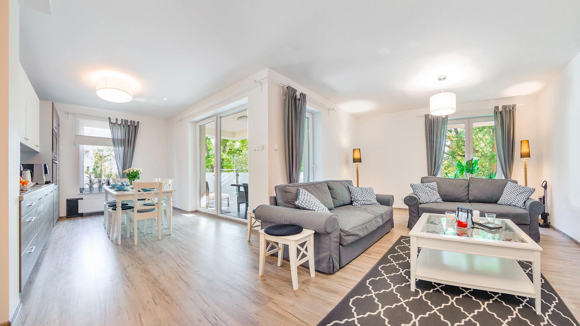 • Haustiere sind in der ausgewählten Wohnung erlaubt. Die Kosten für den Aufenthalt mit einem Haustier betragen 40 PLN pro Tag.