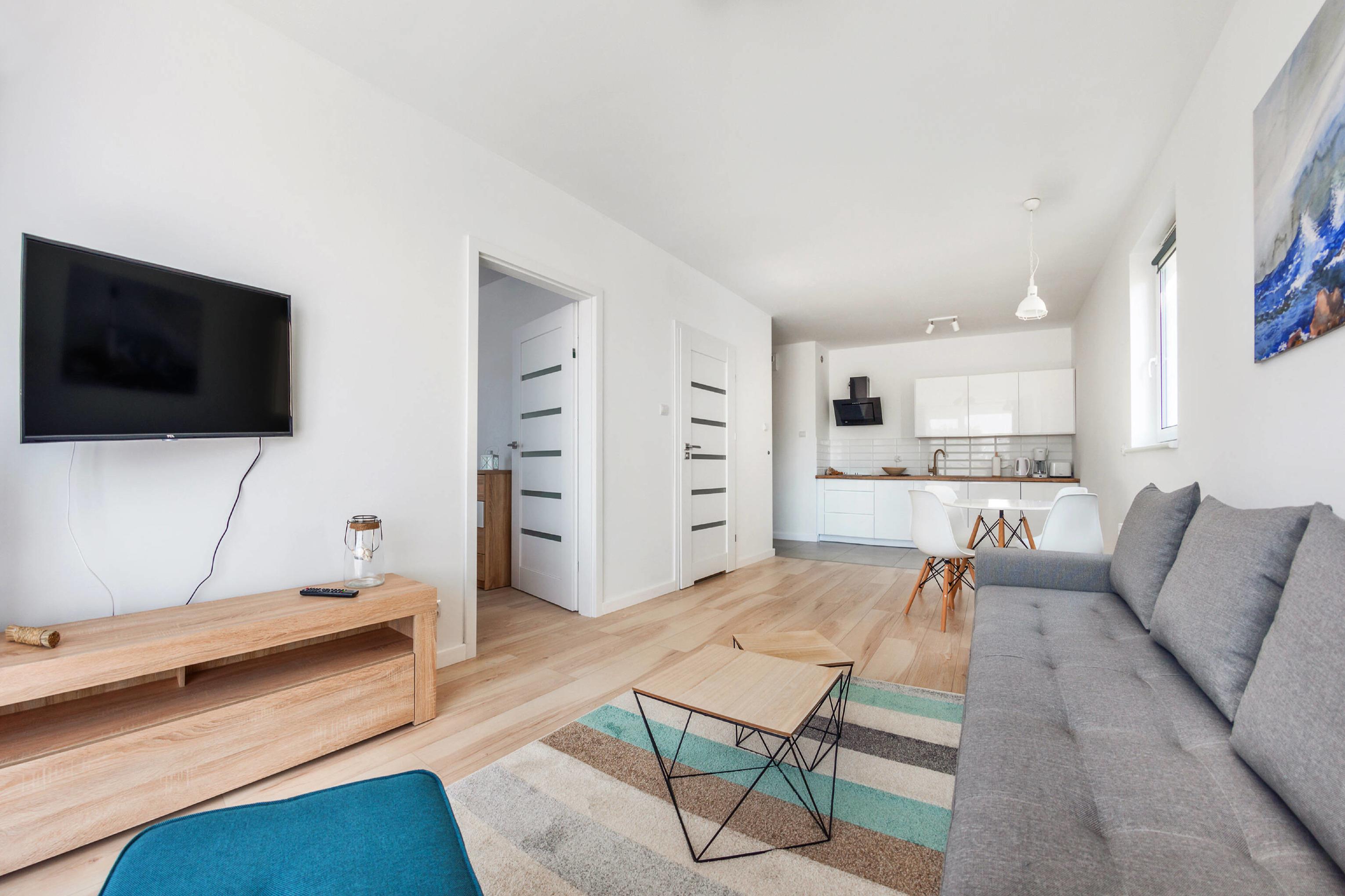 • Haustiere sind in der ausgewählten Wohnung erlaubt. Die Kosten für den Aufenthalt mit einem Haustier betragen 40 PLN pro Tag.