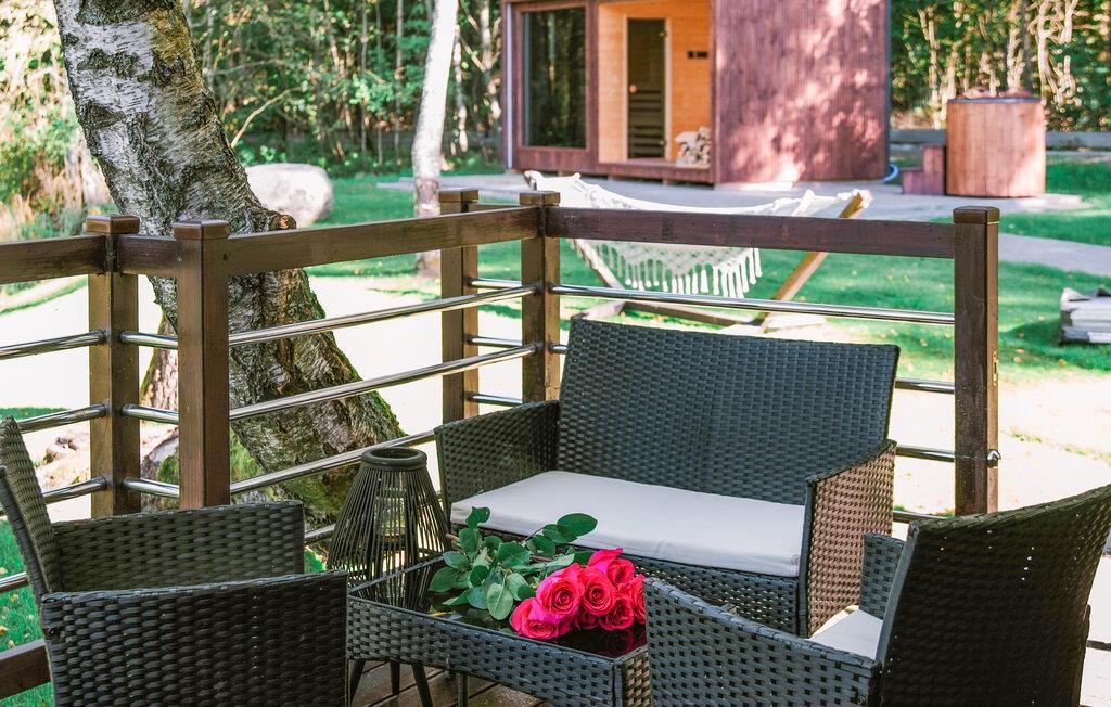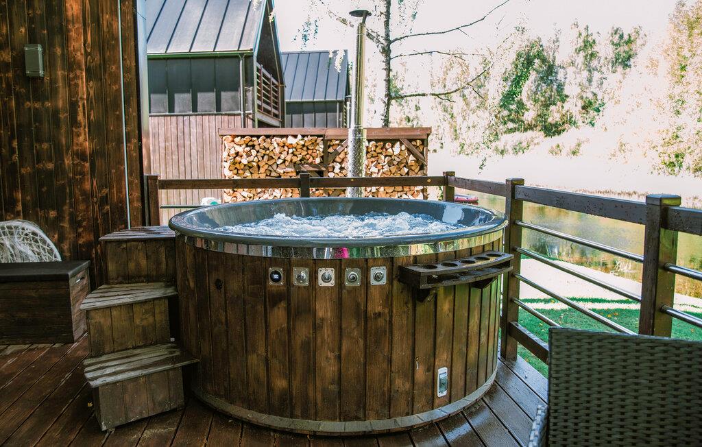 Treten Sie hinaus auf die Terrasse und genießen Sie die ruhige Lage direkt am Wasserlauf. Gartenmöbel laden zum Verweilen im Freien ein. Nutzen Sie den privaten Whirlpool auf der Terrasse und entspannen Sie in warmem Wasser. In der Anlage stehen Ihnen zudem eine Sauna sowie eine Hängematte im Garten zur Verfügung, die zum Abschalten einladen. Lassen Sie Ihre Kinder die Spielgeräte auf dem gemeinsamen Grundstück entdecken. Verbringen Sie auch gesellige Stunden an der Feuerstelle.