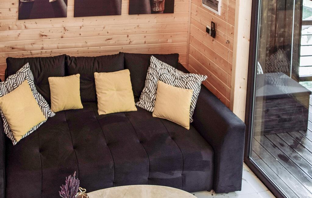 Lassen Sie sich von der warmen Holzgestaltung und der behaglichen Atmosphäre Ihres gemütlichen Ferienhauses empfangen. Zahlreiche schöne Details heben das angenehme Ambiente hervor. Nehmen Sie auf dem Sofa Platz und genießen Sie ruhige Stunden mit einem guten Buch. Nutzen Sie die kleine, moderne Küche, um gemeinsam Ihre Lieblingsgerichte zu zaubern.