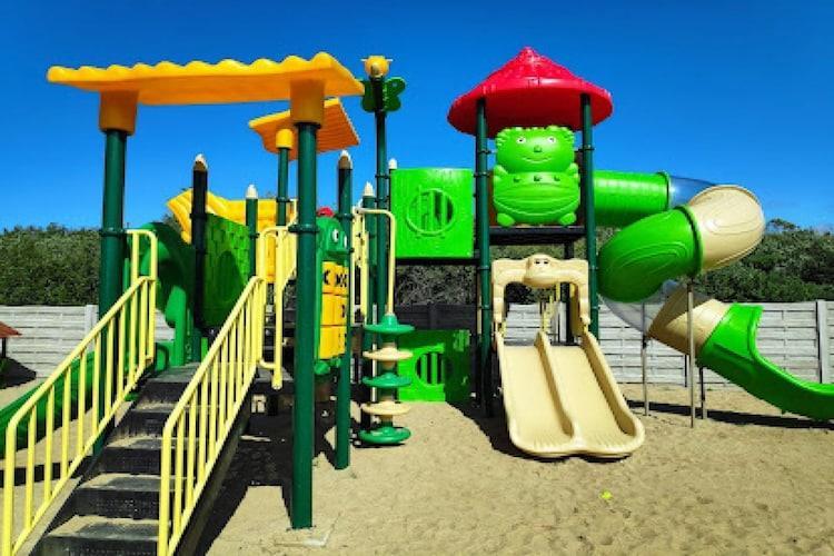 Parterre: (offene Küche(Kochplatte(2 Kochplatten, Induktion), Wasserkocher, Mikrowelle, Kühl-/Gefrierkombination), Wohn/Esszimmer(Doppelschlafcouch, TV(Flatscreen)), Schlafzimmer(Einzelbett, Etagenbett), Badezimmer(Dusche, Waschbecken, Toilette)) Rezeption, Internet, Parkplatz, Tischtennisplatte, Spielplatz, Liegewiese, Babybadewanne, Waschmaschine(Gemeinschaftliche Nutzung mit anderen Gästen, gegen Gebühr), Heizung(elektrisch), Terrasse, Garten(alleinige Nutzung, 25 m2), Garten(Gemeinschaftliche Nutzung mit anderen Gästen, umzäunt), Gartenmöbel, Liegen, Grill(Holzkohle), Trampolin, Sandkasten(Gemeinschaftliche Nutzung mit anderen Gästen), Rutsche(Gemeinschaftliche Nutzung mit anderen Gästen), Hochstuhl, Gartenhaus, Schaukel, Babybett (kostenpflichtig)