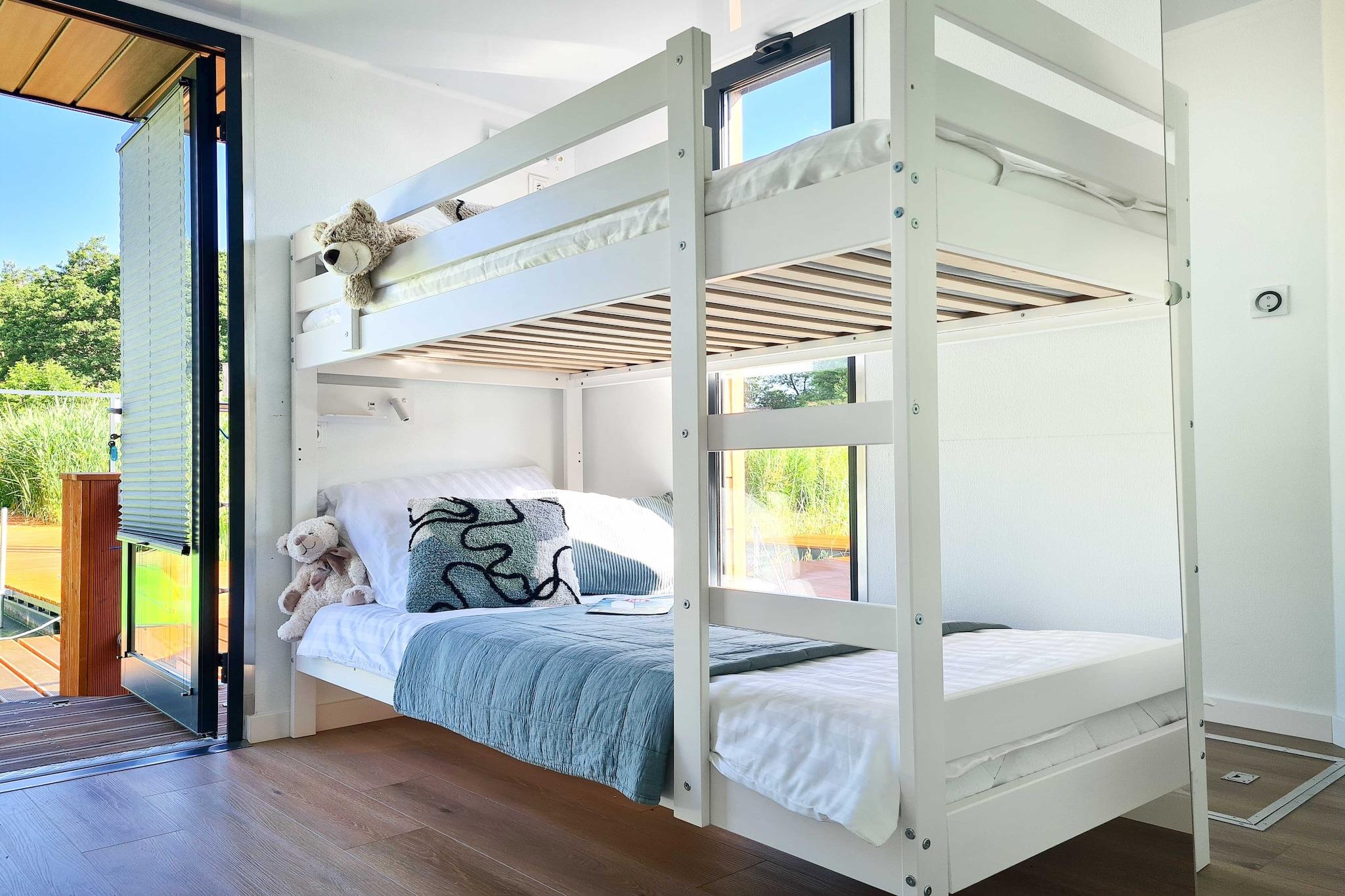 Das Hausboot ist ein charmantes, geräumiges Ferienhaus, das auf Komfort und Entspannung ausgelegt ist. Seine einzigartige Lage am Wasser schafft eine unvergessliche Atmosphäre und ermöglicht es Ihnen, die Ruhe der Natur zu genießen. Die große Terrasse auf dem Dach des Hauses ist ein idealer Ort zum Entspannen im Freien. Es gibt bequeme Möbel, wo Sie sitzen, entspannen und die schöne Aussicht genießen können. Im Erdgeschoss des Hauses befindet sich eine überdachte Terrasse mit Gartenmöbeln, die zusätzlichen Raum zum Entspannen und für Treffen im Freien bietet. Es ist der perfekte Ort für einen Morgenkaffee oder einen abendlichen Drink mit Blick auf das Wasser. Das Haus am Wasser ist mit Klimaanlage und Heizung ausgestattet, was es zu jeder Jahreszeit komfortabel und freundlich macht. Unabhängig vom Wetter können Sie in der Hütte eine angenehme Temperatur genießen. Das Erholungszentrum liegt wunderschön direkt am Jamno-See, etwa 200 Meter vom Meer entfernt, direkt am Wald. Das Grundstück ist mit alten Bäumen bewachsen, Den Gästen stehen ein kostenloser Parkplatz, ein Kinderspielplatz, ein Platz zum Anzünden eines Lagerfeuers, ein Lebensmittelgeschäft, eine Motorbootfahrt und ein Verleih von Fahrrädern, Wasserfahrrädern, Elektrorollern, Wasserfahrrädern und einem Grill zur Verfügung. In der Nähe gibt es Geschäfte, Restaurants und Bars. Lazy ist eine kleine und ruhige Küstenstadt, umgeben von Seen und Wäldern, ein perfekter Ort für Menschen, die Entspannung inmitten der Natur und abseits der Menschenmassen suchen. Umgeben vom ruhigen Meer, frischer Luft und atemberaubenden Landschaften können sich die Gäste vollkommen entspannen und den Alltagssorgen entfliehen. Zahlreiche Radwege ermöglichen es den Gästen, die Gegend auf zwei Rädern zu erkunden und die Schönheit der Natur zu genießen.