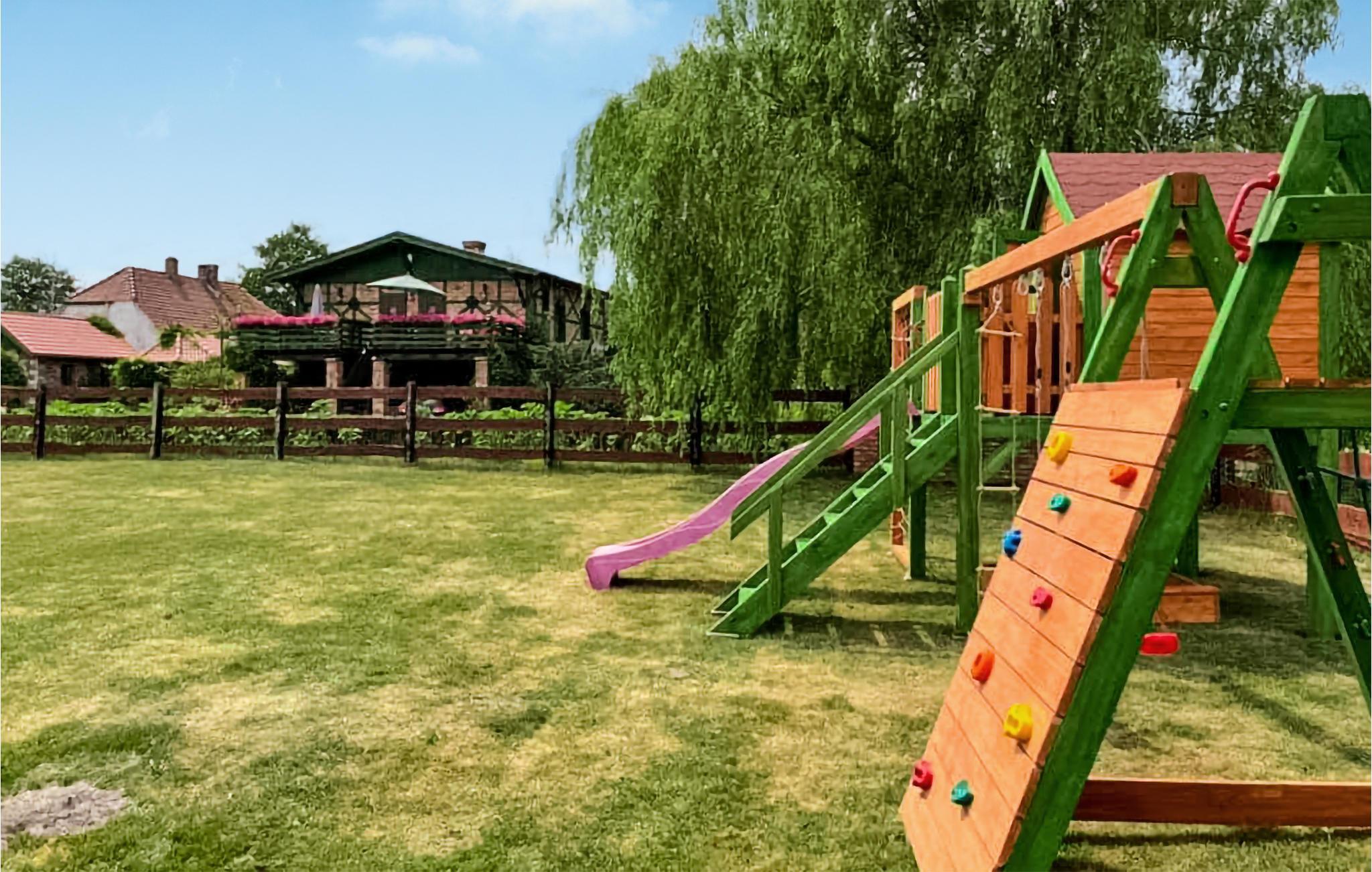 Das Anwesen um das Haus ist sehr einladend, denn ein Teich, in dem Sie auch Angeln können und ein Kinderspielplatz erwarten Sie hier. Auf dem großen Naturgrundstück finden Sie außerdem einen Pavillon und Aussichtsturm am Seeufer vor. Gehen Sie mit Ihrem Pferd ausreiten oder zu Fuß auf Wanderung. Verpassen Sie es auch nicht einen Ausflug nach Leba und die dortige Wanderdüne zu machen. Spazieren Sie auf und erklimmen Sie die Düne und genießen den Ausblick auf den See und die polnische Ostseeküste.