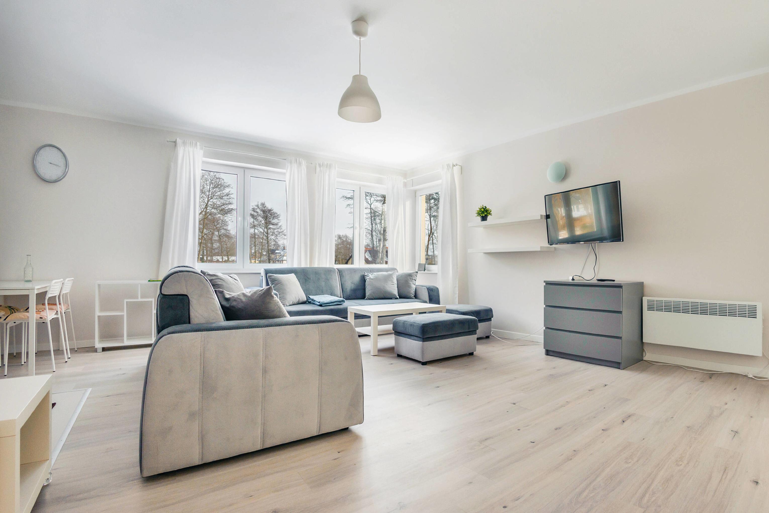 Zu den gewählten Apartments darf man mit dem Hund ankommen. Die zusätzlichen Kosten des Aufenthalts mit einem vierbeinigen Freund betragen 100 PLN (Einzelgebühr). Die Gäste, die den Aufenthalt mit dem Hund planen, bitten wir um eine frühere Kontaktaufnahme mit unserem Service im lokalen Büro.
