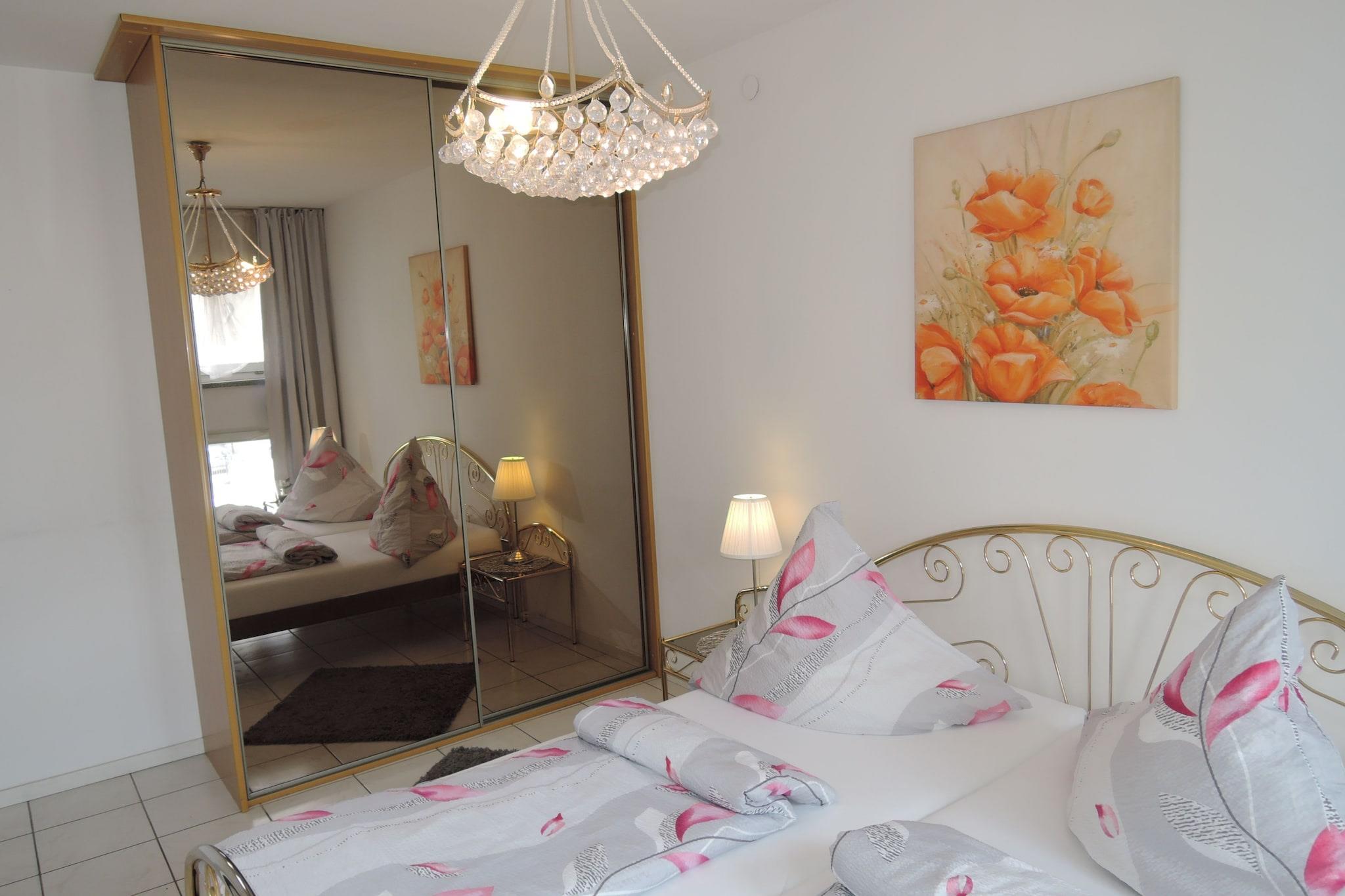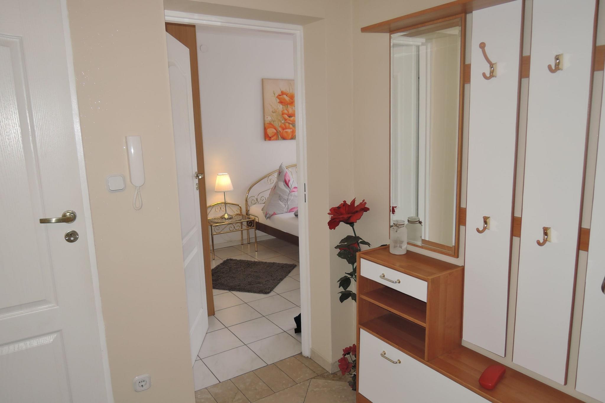 In der 1. Etage: (offene Küche(Esstisch, Wasserkocher, Kochendwasserhahn, Toaster, Kochherd(Induktion), Dunstabzugshaube, Espressomaschine, Mikrowelle, Kühl-/Gefrierkombination), Wohn-/Schlafzimmer(Doppelschlafcouch, TV(Deutsch Fernsehsender), Sitzecke), Schlafzimmer(Doppelbett), Badezimmer(Dusche, Waschbecken, Toilette)) Balkon
