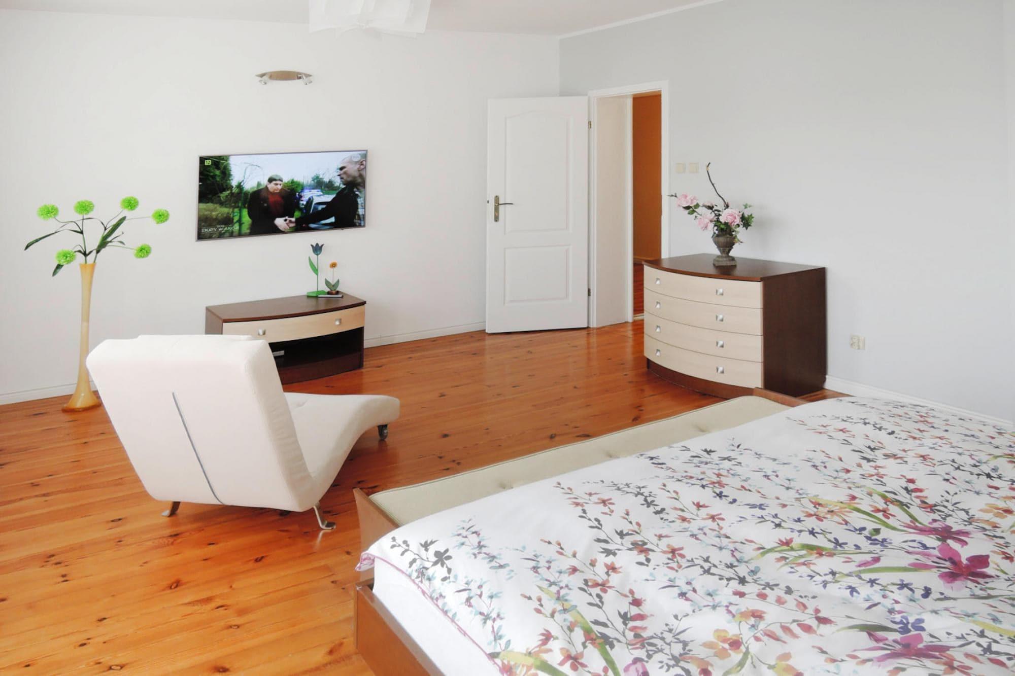 Komfortabel und geschmackvoll eingerichtetes Reihenhaus mit WLAN - in idealer Lage, um einen Bade-Urlaub mit Naturerlebnissen zu kombinieren. Sie wohnen am Rande des Wolinski Nationalparks und nur einen Kilometer vom feinen Ostseestrand entfernt. Abends machen Sie es sich auf der Terrasse mit Grill gemütlich und lassen Ihre Urlaubstage ganz entspannt ausklingen. Der Ferienort Miedzyzdroje ist umgeben von grünen Wäldern und hat einen wunderschönen Sandstrand. Von der Seebrücke aus gibt es einen regen Ausflugsverkehr zur benachbarten Insel Usedom. Entlang der Promenade finden sich viele Cafés und Restaurants, in denen Sie verweilen und sich ein wenig kulinarisch verwöhnen lassen können. Im Zentrum des Ortes gibt es eine große Einkaufspassage mit kleinen Läden und auch Supermärkte oder Discounter sind vorhanden. HighLights : Verbrauchsabhängige Energiekosten, Bettwäsche, Handtücher, Endreinigung WLAN Kurtaxe Aktivitäten in der Nähe : Unmittelbar an Ihren Urlaubsort grenzt der Wolinski Nationalpark, wo es herrliche Rad- und Wanderwege gibt und wo Sie unterwegs mit etwas Glück auch mal einen Seeadler beobachten können. Ebenso Rotwild ist hier beheimatet und als besondere Attraktion hat der Nationalpark Wisente vorzuweisen. Der nächst größere Ort ist Swinoujscie (15 km), der ebenfalls einen Ausflug lohnt Mobilität : Nicht geeignet für Personen mit eingeschränkter Mobilität