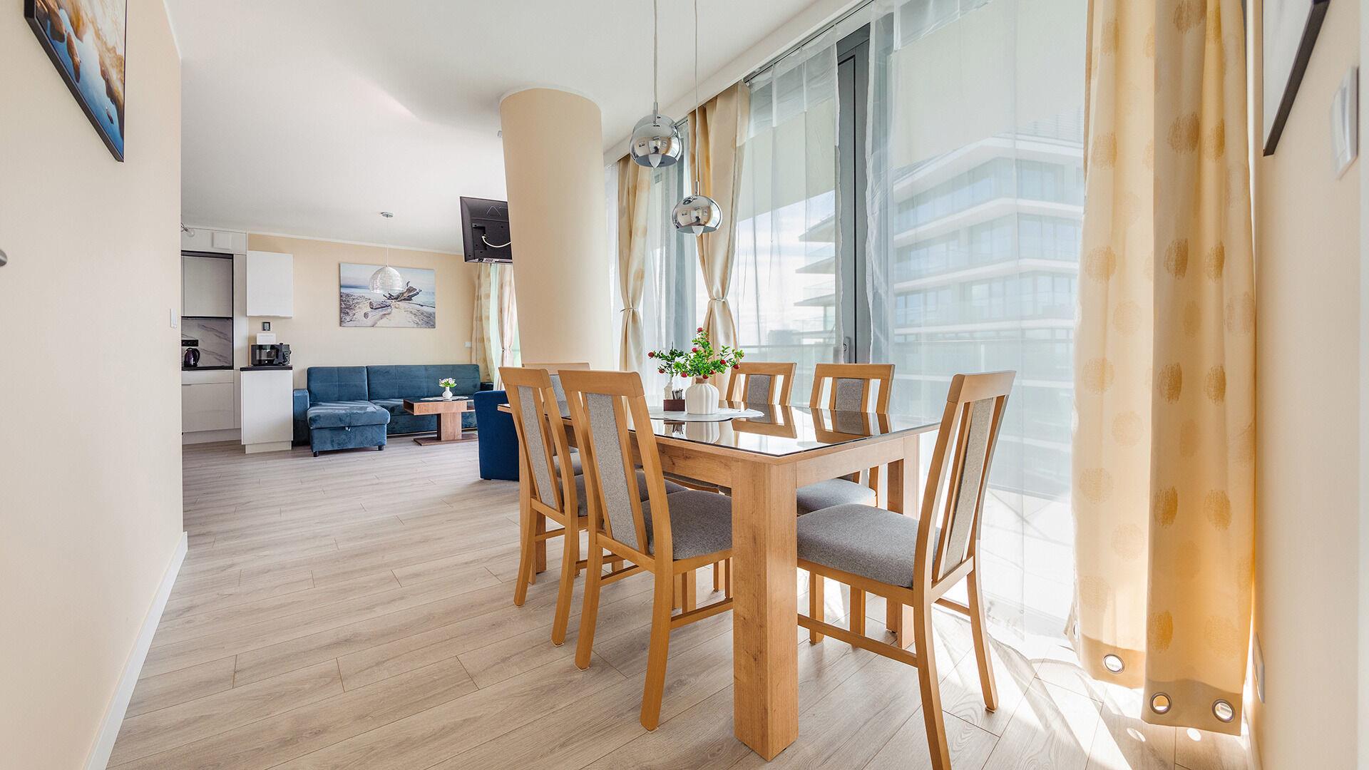 • Haustiere sind in der ausgewählten Wohnung erlaubt. Die Kosten für den Aufenthalt mit einem Haustier betragen 40 PLN pro Tag.
