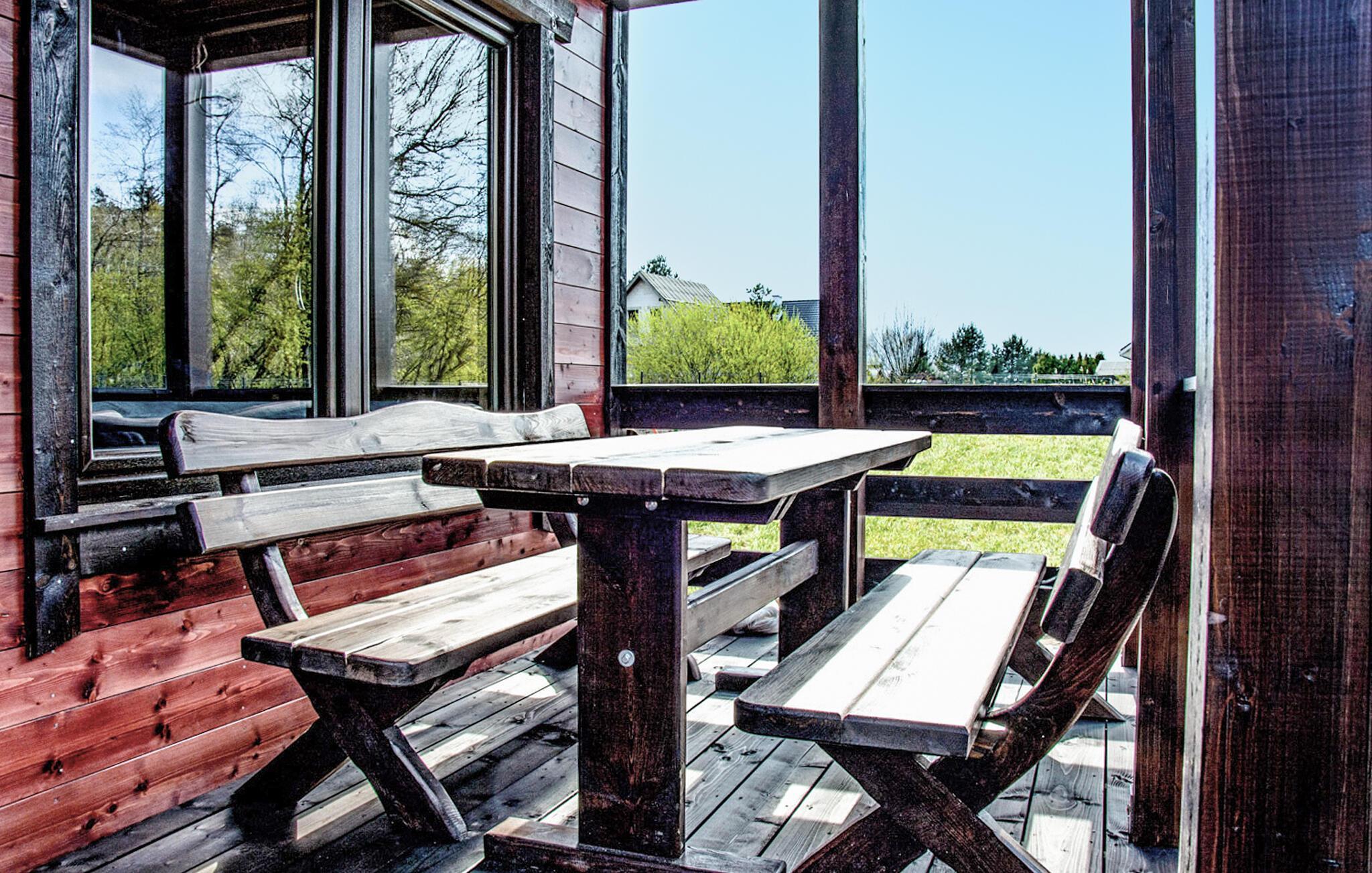 Verbringen Sie entspannte Stunden auf der einladenden Veranda dieses charmanten Holzhauses – ein Paradies für Familien!