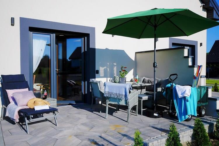 Parterre: (offene Küche(Kochplatte(Induktion), Wasserkocher, Dunstabzugshaube, Kaffeemaschine, Mikrowelle, Kühl-/Gefrierkombination), Wohn/Esszimmer(Doppelschlafcouch(140 x 200 cm), TV(Flatscreen), Esstisch), Badezimmer(Dusche, Waschbecken, Toilette)) In der 1. Etage: (Schlafzimmer(Doppelbett), Schlafzimmer(Doppelschlafcouch(140 x 190 cm))) Internet, Parkplatz, Spielplatz, Liegewiese, Klimaanlage, Terrasse, Garten(Gemeinschaftliche Nutzung mit anderen Gästen, umzäunt), Gartenmöbel, Liegen, Grill(Holzkohle), Trampolin, Rutsche(Gemeinschaftliche Nutzung mit anderen Gästen), Sonnenschirm, Schaukel