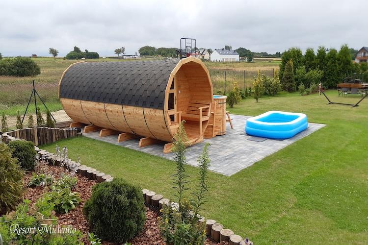 Ein Familienferienort am Stadtrand von Mielno – eine kleine, ruhige Küstensiedlung, die ein ruhiger Vorort des lebhafteren Ferienortes Mielno ist. Der Strand ist 850 m entfernt. Das ruhige Zentrum von Mielenka ist nur wenige Schritte entfernt. Im 3 km entfernten Mielno gibt es viele Restaurants, Cafés und Geschäfte. Ein sehr komfortables Ferienhaus liegt inmitten eines umzäunten Geländes der kleinen Ferienanlage. Das Haus ist zweistöckig und verfügt über eine überdachte Terrasse mit Loungemöbeln. Im Erdgeschoss gibt es ein geräumiges Wohnzimmer mit großem Tisch und Fernseher. Es gibt auch ein ausklappbares 2-Sitzer-Sofa. Das Wohnzimmer ist mit einer gut ausgestatteten Küche verbunden. Im Erdgeschoss gibt es außerdem ein Schlafzimmer mit Doppelbett und ein Badezimmer mit Dusche (es gibt auch eine Waschmaschine). Im ersten Stock gibt es 3 weitere Schlafzimmer und ein zweites Badezimmer mit Dusche. Das Haus ist mit der Heizung ausgestattet. WLAN ist verfügbar. Das Resort bietet viele Attraktionen für Gäste, die hierher kommen. Es gibt eine ganzjährig geöffnete Sauna und einen Whirlpool im Freien (im Preis des Aufenthalts inbegriffen, verfügbar für alle Gäste des Resorts). Es gibt auch einen Fahrradverleih (auch elektrisch). Im Garten gibt es einen öffentlichen Grillpavillon. Für die jüngsten Gäste wurde ein attraktiver Spielplatz vorbereitet. Es besteht auch die Möglichkeit, Frühstück und Mittagessen vor Ort zu bestellen. Im Preis des Aufenthalts sind enthalten: Bettwäsche, Handtücher, Strom- und Wasserverbrauch, Sauna, Whirlpool, Endreinigung, Internet, Parkplatz, Kurtaxe. Auf Anfrage und nach vorheriger Absprache besteht die Möglichkeit, ein Kinderbett für ein Kleinkind und einen Hochstuhl (kostenlos) zu mieten. Der schöne Meeresstrand ist zu Fuß oder mit dem Fahrrad schnell zu erreichen. 3 km vom Zentrum entfernt befindet sich der Jamno-See mit einem Yachthafen und einem Verleih von Wasserausrüstung (Tretboote, Kajaks, Ruderboote). Hier gibt es auch Angelplätze.