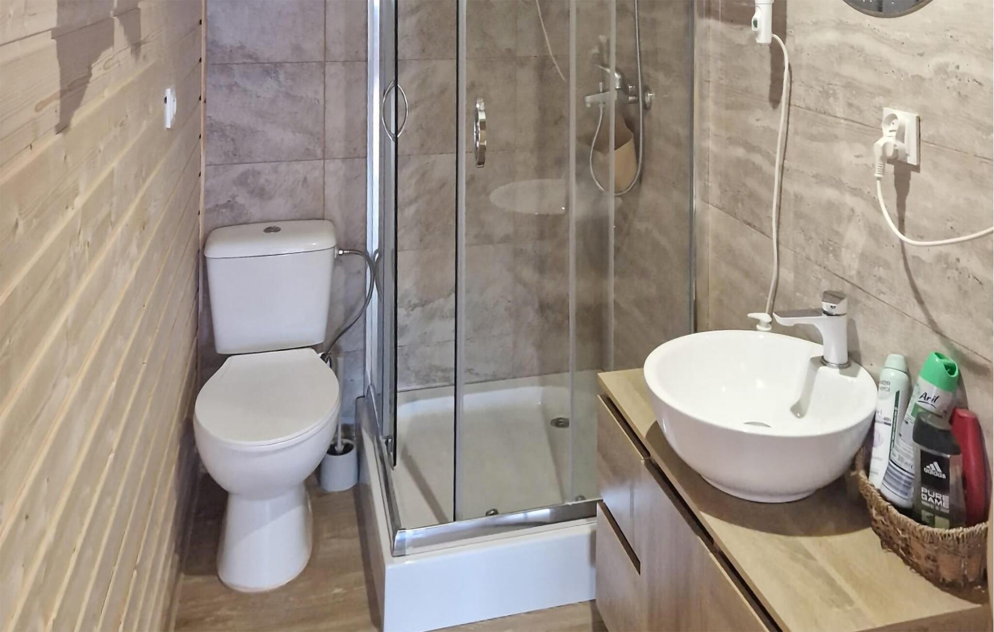 - WC mit warmem und kaltem Wasser, Dusche