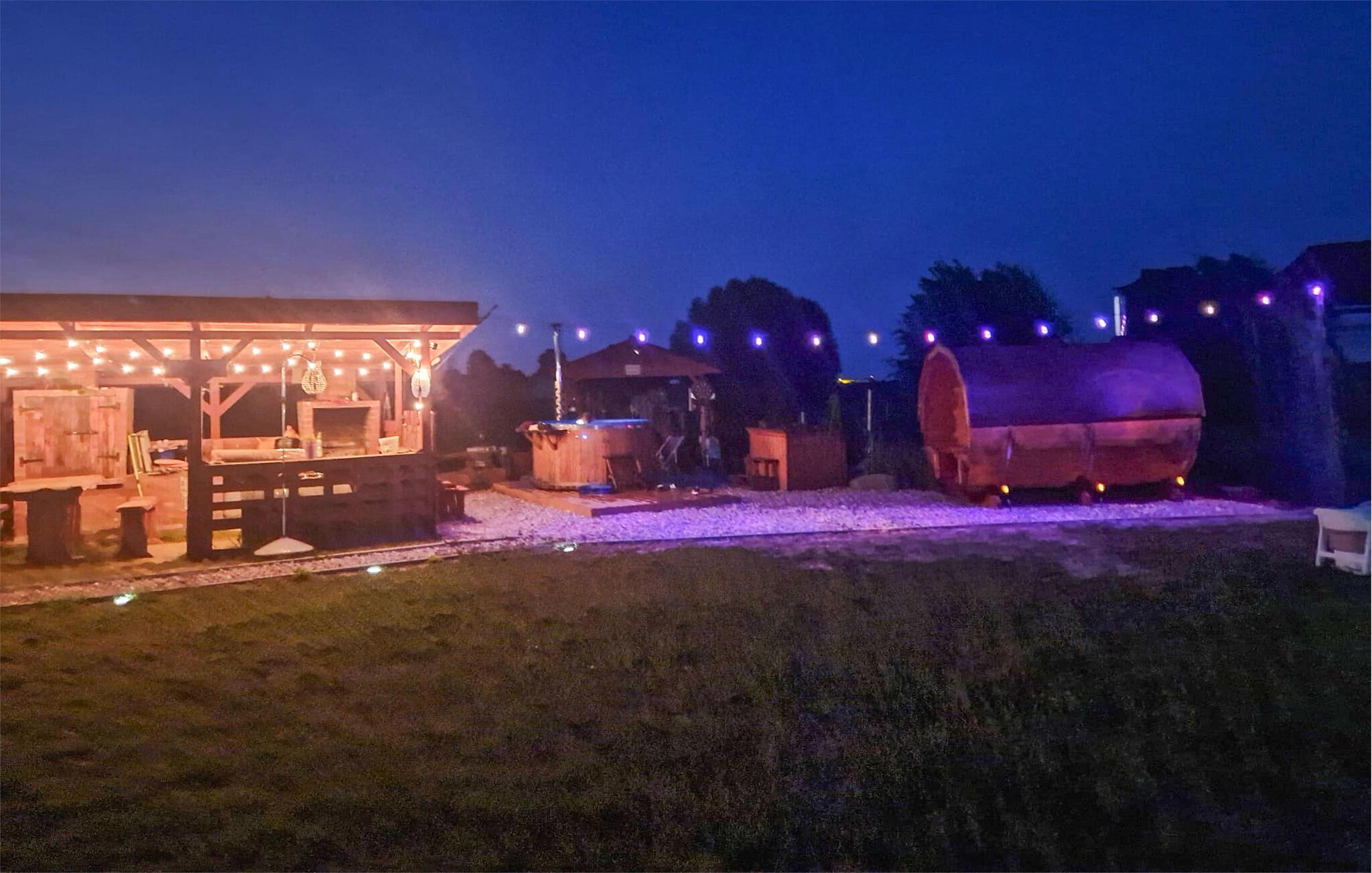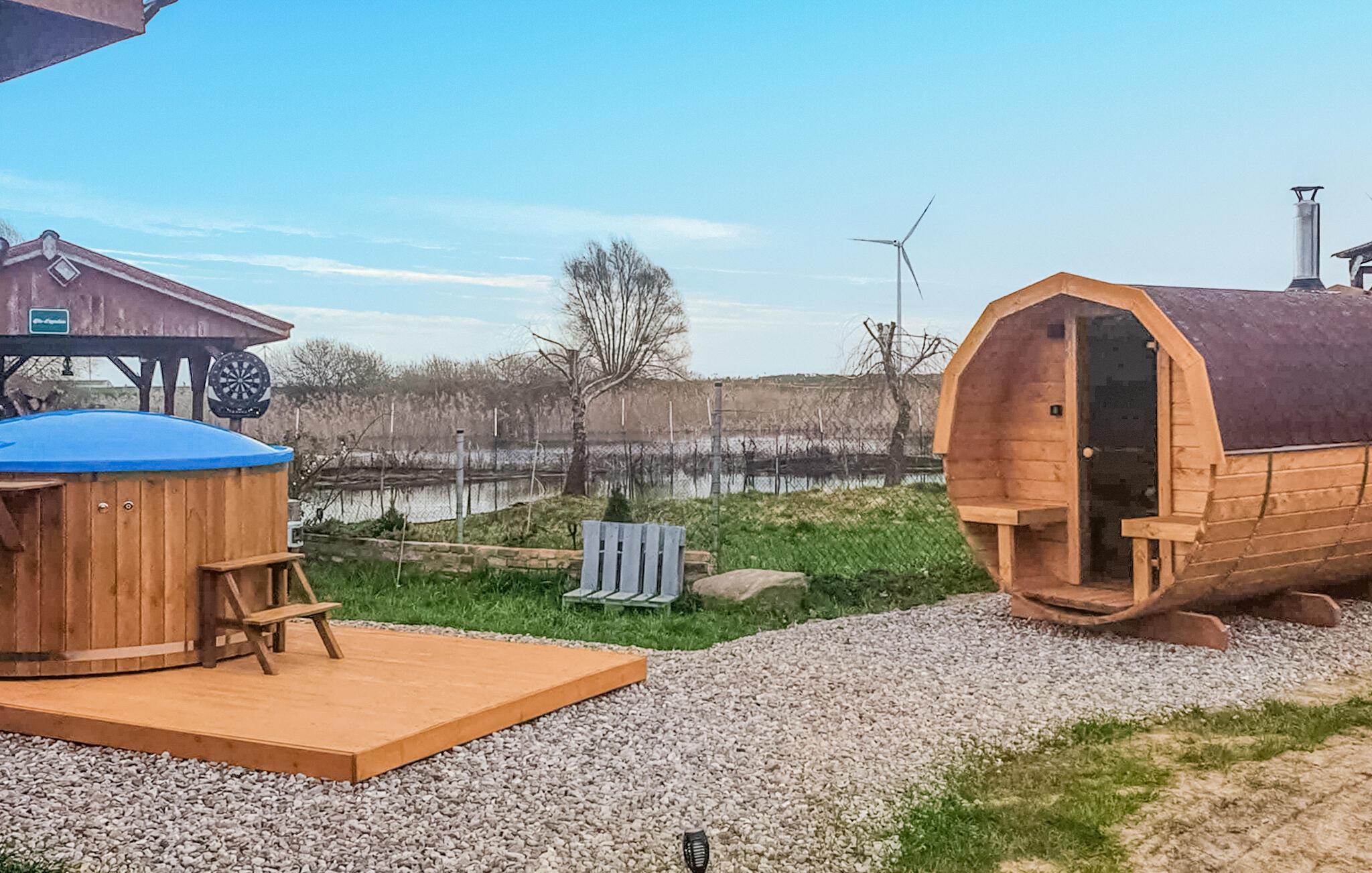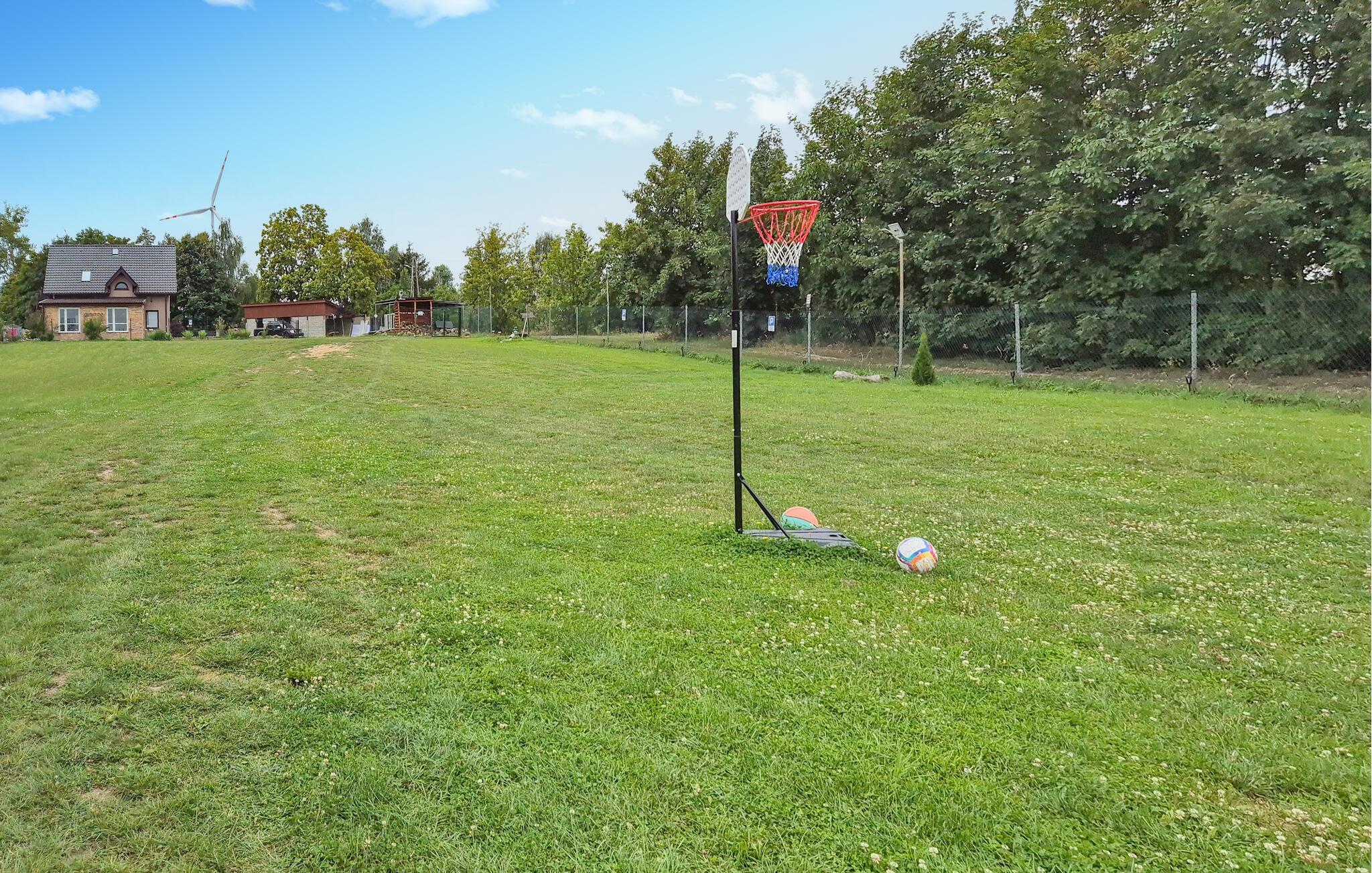 Im Außenbereich erwarten Sie ein Whirlpool und eine Gemeinschaftssauna für wohltuende Erholung. Lassen Sie den Tag mit einem gemütlichen Grillabend ausklingen, treffen Freunde am Lagerfeuer und genießen die Abgeschiedenheit dieses schönen Ortes. Für die Kleinen gibt es einen Spielplatz mit Schaukel und viel Platz zum Toben. Basketball und andere Outdoor-Aktivitäten bieten zudem Unterhaltung für die ganze Familie. Nur unweit entfernt liegt ein ruhiger See mit einem kleinen Sandstrand, ideal für erfrischende Badeausflüge oder entspannte Stunden am Wasser. Für Angler gibt es einen Teich, in dem man angeln und ruhige Momente in der Natur verbringen kann.