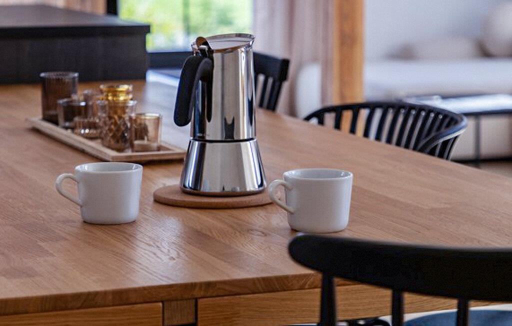 Diese Wohnung verspricht Ihnen einen Urlaub vom Feinsten. Der offene Wohnraum mit den sichtbaren Holzbalken und der warmen Holzoptik lädt zu entspannten Stunden auf dem Sofa ein. Egal ob Sie hier gemütlich Kaffee trinken, einen interessanten Podcast hören oder einen lustigen Spieleabend verbringen, hier bestimmen Sie den Rhythmus Ihres Tages.
