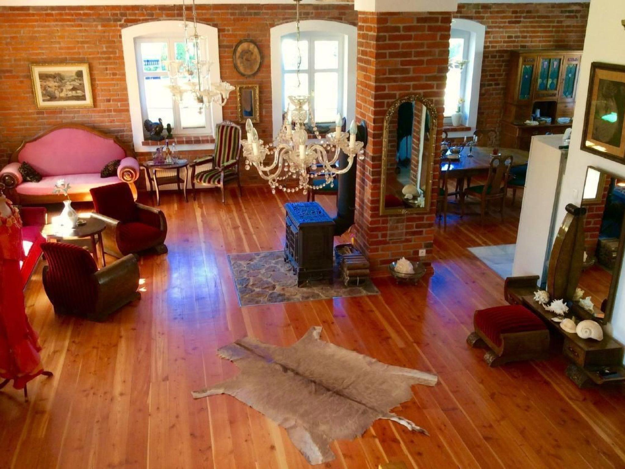 Das Anwesen ist ein sehr geräumiges (450 Quadratmeter) authentischen pommerschen Haus, in rotem Backstein am Ende des 19. Jahrhunderts gebaut.das Äußere und das Innere des Hauses wurde komplett renoviert und mit originalen antiken Möbeln, Lampen, Gemälden und Skulpturen eingerichtet. Das Haus ist nur 400 m vom schönen Sandstrand, dem Kiefernwald und den spektakulären Dünen entfernt. Es gibt 6 Schlafzimmer mit modernen Qualitätsbetten, 6 Bäder, ein großes Wohnzimmer, das mit dem Esszimmer und der Küche verbunden ist. Im Hauptwohnzimmer gibt es Sofas, Chaiselongues, Sessel, einen Kamin, ein Klavier, Bücher, Musik und einen Fernseher mit Satellitenempfang. Das andere kleinere Wohnzimmer im Obergeschoss hat ein Sofa und Sessel zum Entspannen. Im Haus gibt es 2 Bäder mit Badewannen, Duschen, Bidets, Toiletten, 2 Bäder in den Zimmern (nur Badewannen und Waschbecken) und 2 separate Toiletten mit Waschbecken. Alle Bäder sind aus weißem Marmor. Neben dem Haus gibt es einen kleinen Garten mit Sitzgelegenheiten, einer Schaukel und einem Grill. In der Nähe des Hauses gibt es einen schönen Sandspielplatz für Kinder, 2 lokale Fischrestaurants, die baltischen Fisch servieren, der direkt von den Fischerbooten gebracht wird. Der Ort ist sehr ruhig und sicher. Es gibt einen Weg für Radfahrer, der durch den Kiefernwald führt. Es gibt WiFi und Parkplätze auf dem Grundstück. Das Haus ist komplett ausgestattet, die Küche hat alles, die Schlafzimmer haben Handtücher, Bettwäsche und Bademäntel. Es gibt eine Waschmaschine, Trockner, Sonnenschirme und Liegestühle, Decken usw.KurzbeschreibungSonstiges : NichtraucherhausKurzbeschreibung 1Anzahl der Küchen : 1UmgebungSportmöglichkeiten in der Nähe : Angeln, Jagdmöglichkeiten, SegelnVermietungsmöglichkeiten: Fahrradverleih, AutovermietungGarten und AußenanlagenGartenanlagen : Gartenmöbel vorhanden, GrillFreizeiteinrichtungen vor Ort : Spielplatz