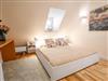In der oberen Etage des Hauses befinden sich drei weitere Schlafzimmer: zwei mit großen Doppelbetten und eines mit einem großen Einzelbett. Alle Zimmer verfügen über Kleiderschränke. Auch in diesem Wohnbereich gibt es ein Badezimmer mit Dusche, WC und Waschmaschine. Das Erdgeschoss und die obere Etage sind über eine elegante Holztreppe miteinander verbunden.