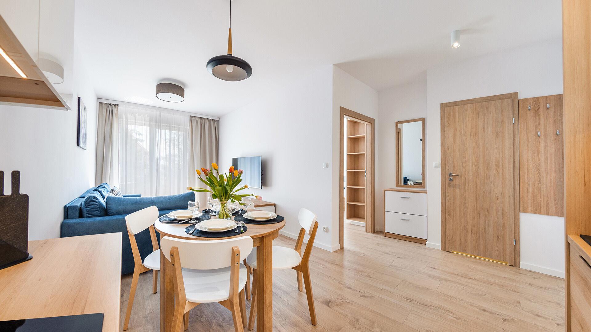 Zu den gewählten Apartments darf man mit dem Hund ankommen. Die zusätzlichen Kosten des Aufenthalts mit einem vierbeinigen Freund betragen 100 PLN (Einzelgebühr). Die Gäste, die den Aufenthalt mit dem Hund planen, bitten wir um eine frühere Kontaktaufnahme mit unserem Service im lokalen Büro.