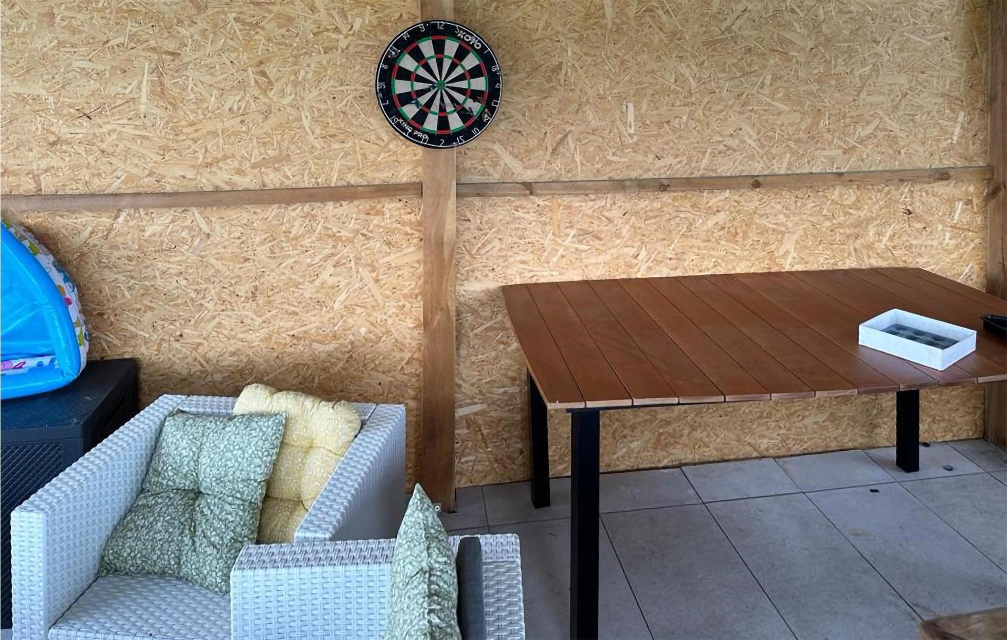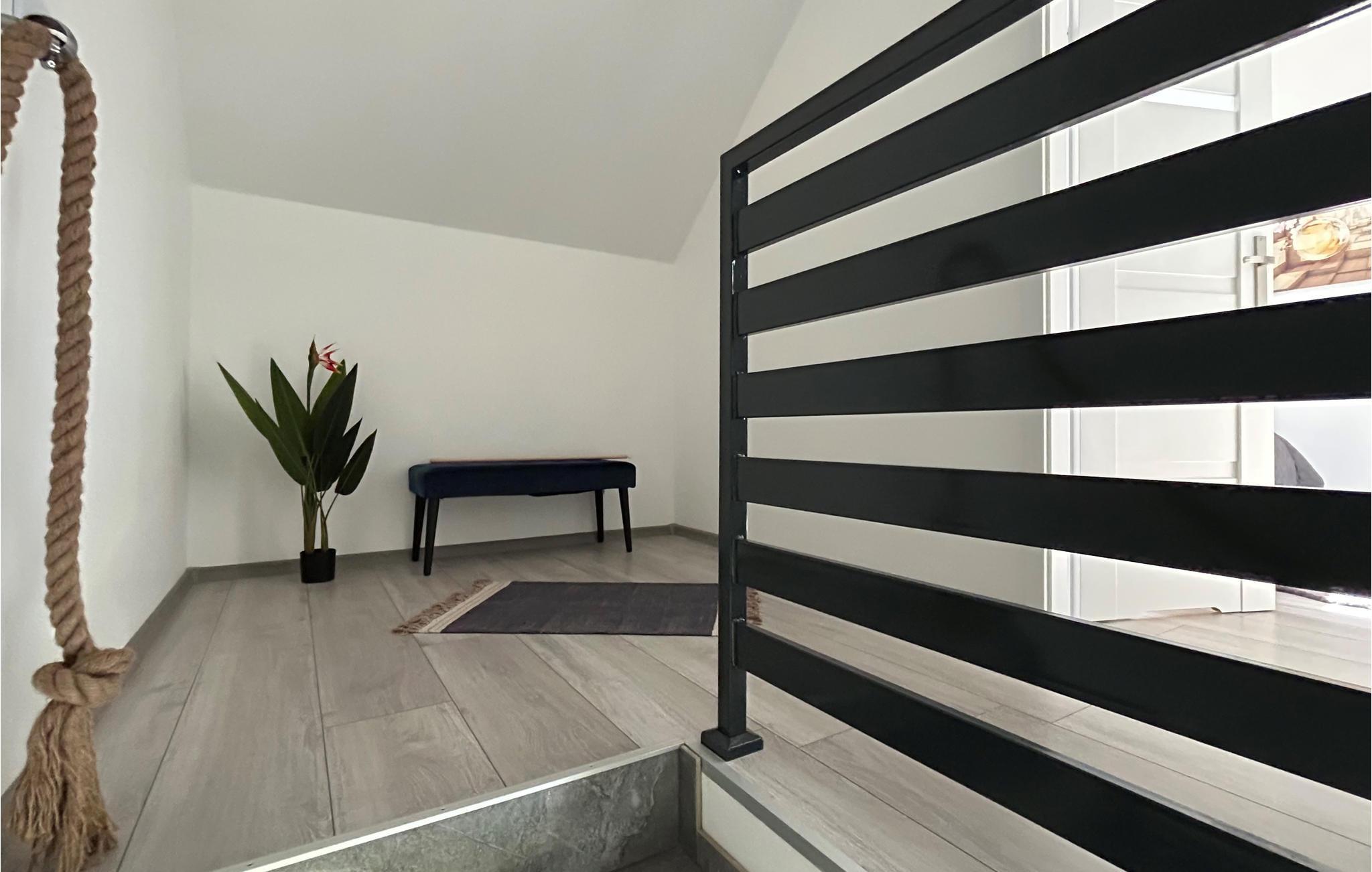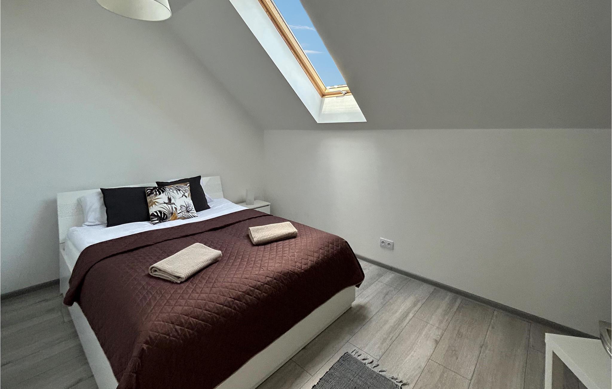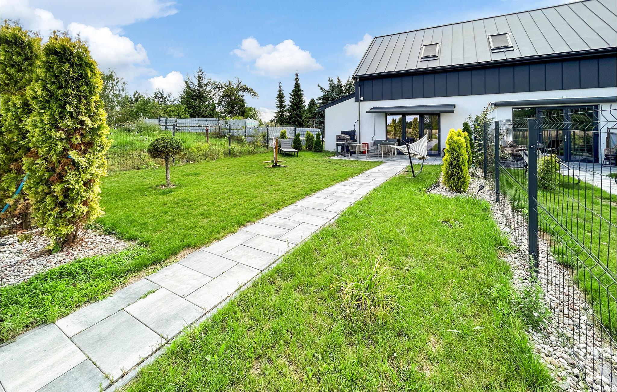 In ländlicher Umgebung nahe dem See und in relativ kurzer Entfernung zur Stadt Mikolajki empfängt Sie dieses Ferienhaus auf zwei Ebenen. Das moderne Interieur und die warme Farbenpalette schaffen eine angenehme Atmosphäre, in der Sie sich wohlfühlen werden. Zaubern Sie gemeinsam in der Küche und genießen Sie eine freudvolle Familienmahlzeit. Draußen gibt es viele lauschige Ecken zum Verweilen. Wer fordert wen beim Billard auf der Terrasse heraus? Niemand, ob jung oder alt, wird sich hier langweilen! Sehen Sie den Kindern beim Spielen zu, wie sie fröhlich buddeln, Badminton spielen oder im gemeinsamen Wellnesspool tauchen, während Sie sich sonnen und ein spannendes Buch im Hängesessel lesen. An heißen Tagen können Sie auf der offenen Terrasse die Markise ausfahren. Spüren Sie die Ruhe und lassen Sie in der Hängematte Körper und Seele baumeln.