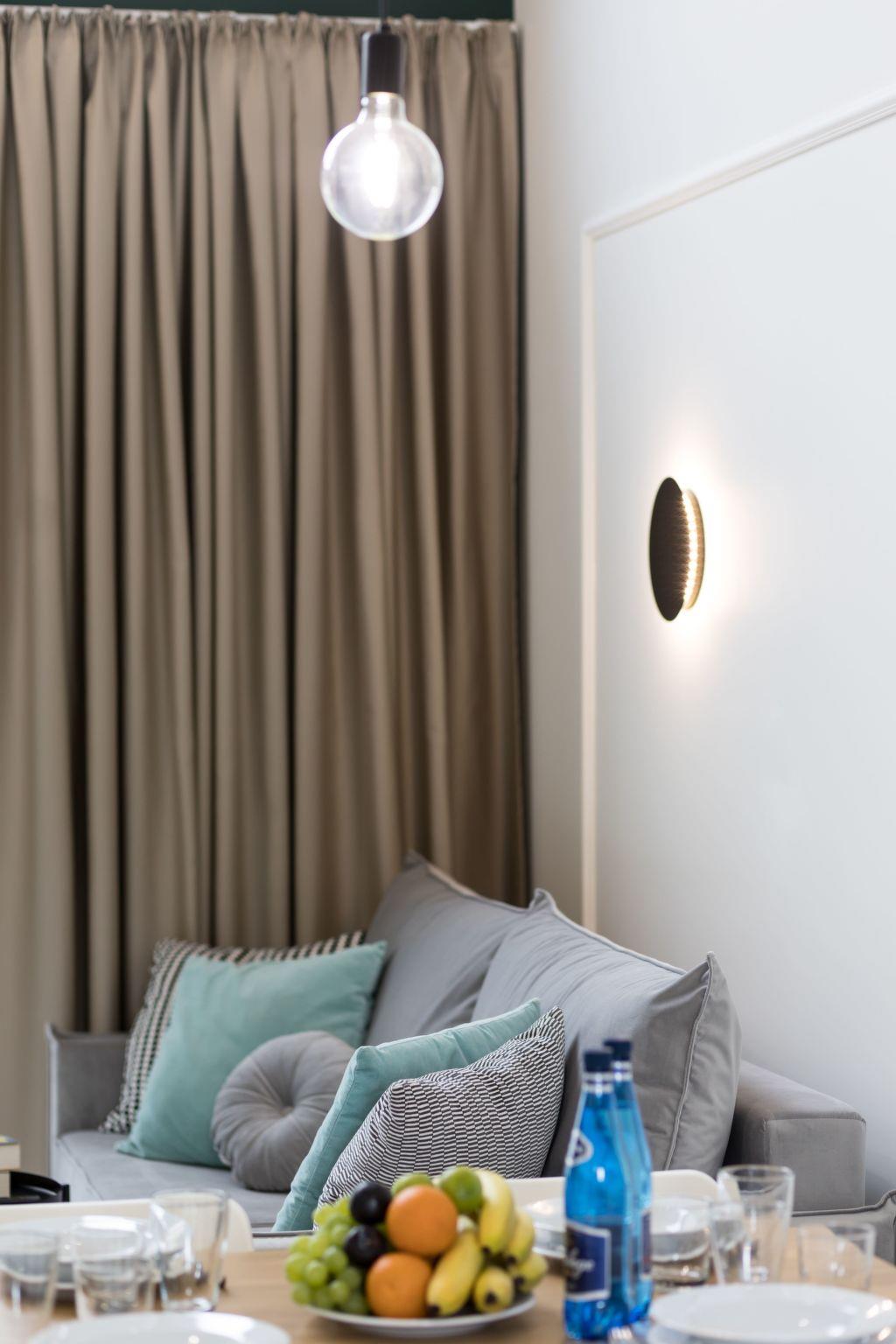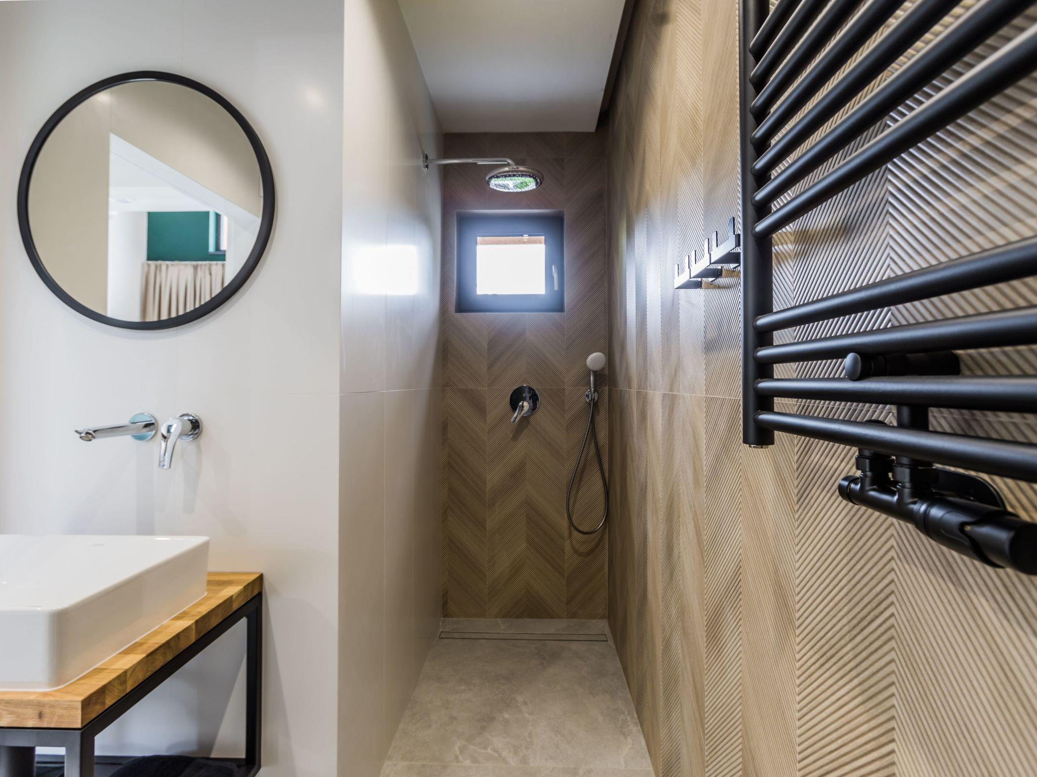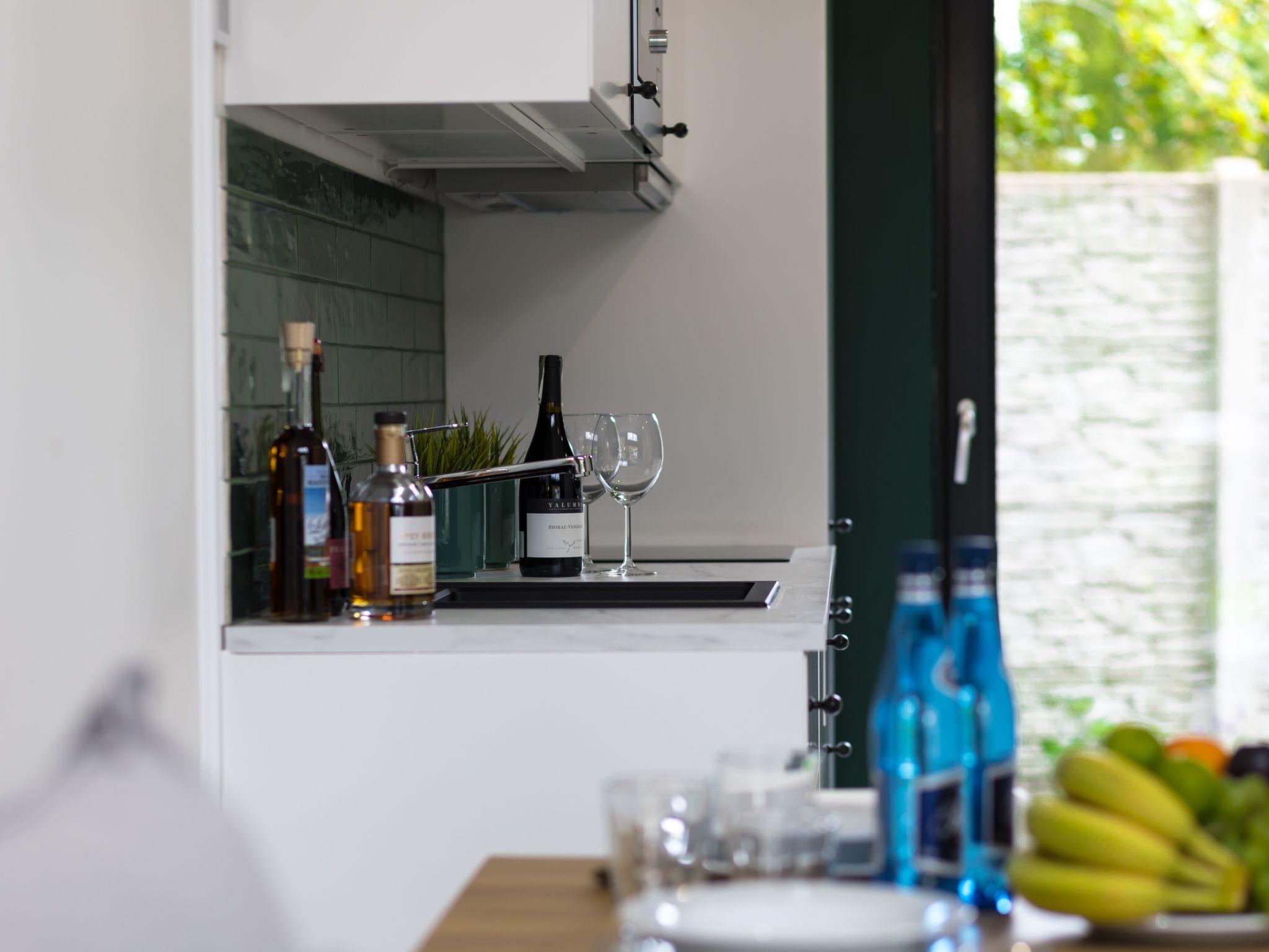 Der Raum wurde in Wohn- und Schlafbereiche aufgeteilt. Im Erdgeschoss finden Sie ein helles und geräumiges, klimatisiertes Wohnzimmer mit Essbereich und offener Küche, ein Badezimmer und ein Ankleidezimmer. In der Küche finden Sie alle notwendigen Geräte und Accessoires: Geschirr, einen großen Kühlschrank mit Gefrierfach, ein 3-Flammen-Induktionskochfeld, einen Geschirrspüler, eine Mikrowelle, einen Wasserkocher, eine Nespresso-Kaffeemaschine sowie ein Willkommenspaket (Wasser, Tee, Kaffeekapseln, Zucker). Das Badezimmer verfügt über eine geräumige begehbare Dusche mit Regendusche.