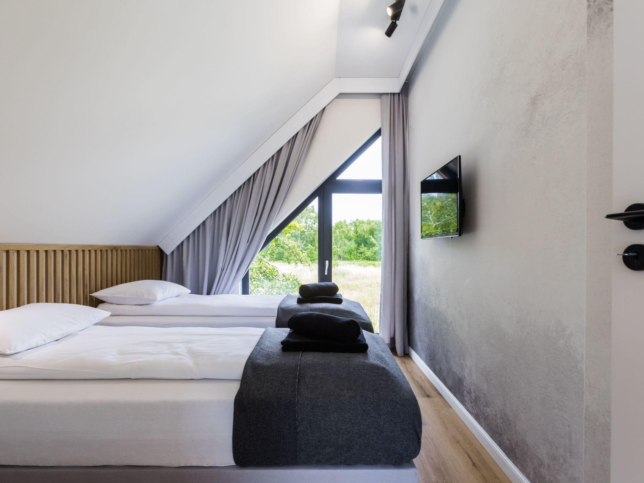 Mare sind vier moderne, freistehende Scheunen, die sich in einem abgelegenen und sehr malerischen Teil von Niechorze befinden, nur eine Minute zu Fuß vom Strand entfernt. Wenn Sie auf der Suche nach einem Urlaub mit Meeresrauschen im Hintergrund sind, abseits von Menschenmassen, in einer schönen Umgebung und mit stilvollem Interieur, dann sind unsere Häuser genau das Richtige für Sie! Beim Bau von Mare haben wir uns von der Ästhetik, aber auch vom Komfort unserer Gäste leiten lassen. So verfügt jedes Haus über ein geräumiges und sonniges Wohnzimmer mit Garderobe, eine gut ausgestattete Küche, ein großes Badezimmer und zwei separate Schlafzimmer im Zwischengeschoss. Jedes Zimmer verfügt über eine individuell regulierbare Klimaanlage, einen Fernseher und WLAN in der gesamten Anlage. Jedes Haus verfügt über eine mehr als 20 Meter lange überdachte Terrasse, die perfekt als Erweiterung des Wohnzimmers funktioniert. Außerdem gibt es viel Grün, in das ein Spielplatz und Grillplätze integriert wurden.