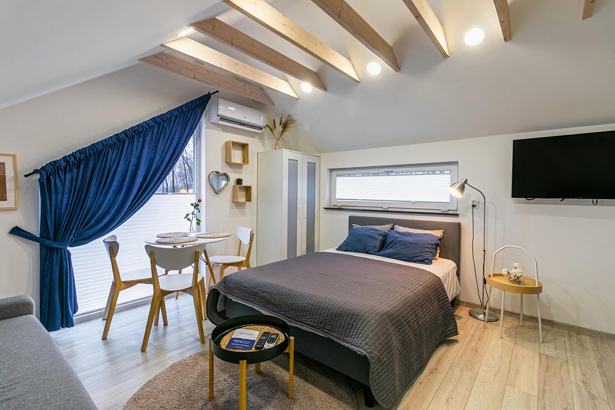 Ferienresort mit attraktiver Infrastruktur (u.a. Schwimmbad, Sauna, Whirlpool), 700 m vom Strand entfernt. Gemütliche Wohnung im 1. OG. Das Wohnzimmer ist nicht nur ein Schlafzimmer (Doppelbett + Ausziehcouch), sondern verfügt auch über einen Tisch und einen Fernseher. Offene Küche, gut ausgestattet. Badezimmer mit Dusche. Es gibt eine Klimaanlage und eine Fußbodenheizung. Es gibt eine Terrasse mit Gartenmöbeln und einem Elektrogrill. WLAN ist verfügbar. Das Resort verfügt über einen Außenpool mit beheiztem Wasser (vom 01.05 bis 30.09), eine Sauna (tägliche Sitzungen von 18:00 bis 20:00 Uhr im Aufenthaltspreis inbegriffen; private Sitzungen gegen Aufpreis), einen Whirlpool (gegen Aufpreis). ), Wellnessbereich (Massagen, Beautybehandlungen), Fahrrad- und Quadverleih, Outdoor-Fitnessstudio und Volleyballplatz. Im Garten gibt es Hängematten, Gartenpavillons, einen Teich mit Angelmöglichkeiten, einen attraktiven Spielplatz und einen Mini-Zoo. Es gibt sichere Parkplätze (gegen Aufpreis). Vor Ort gibt es ein Restaurant (im Sommer), in dem Sie ein Frühstücksbuffet und Mittagsgerichte bestellen können. Außerdem gibt es ein Café und eine Cocktailbar. Im Preis Ihres Aufenthaltes sind enthalten: Bettwäsche, Wasserverbrauch, Klimaanlage, Nutzung des Sommerschwimmbades (von Mai bis Ende September), tägliche Saunagänge (von 18:00 bis 20:00 Uhr), Internet. Niechorze ist ein Ferienort in der Woiwodschaft Westpommern. Sie liegt an der Küste der Ostsee und ist das Zentrum der malerischen Rewal-Küste. Niechorze bietet Touristen einen sauberen Strand und einen bewachten Badebereich. Hier gibt es auch eine Angelbasis, perfekt als Hintergrund für Erinnerungsfotos. Wenn Sie in der Nähe des Strandes sind, müssen Sie sich unbedingt das Wahrzeichen der Stadt ansehen. Es ist ein hoher Leuchtturm, der für Besucher geöffnet ist. Der Stolz der Stadt (und eigentlich der gesamten Region) ist die renovierte Schmalspurbahn.