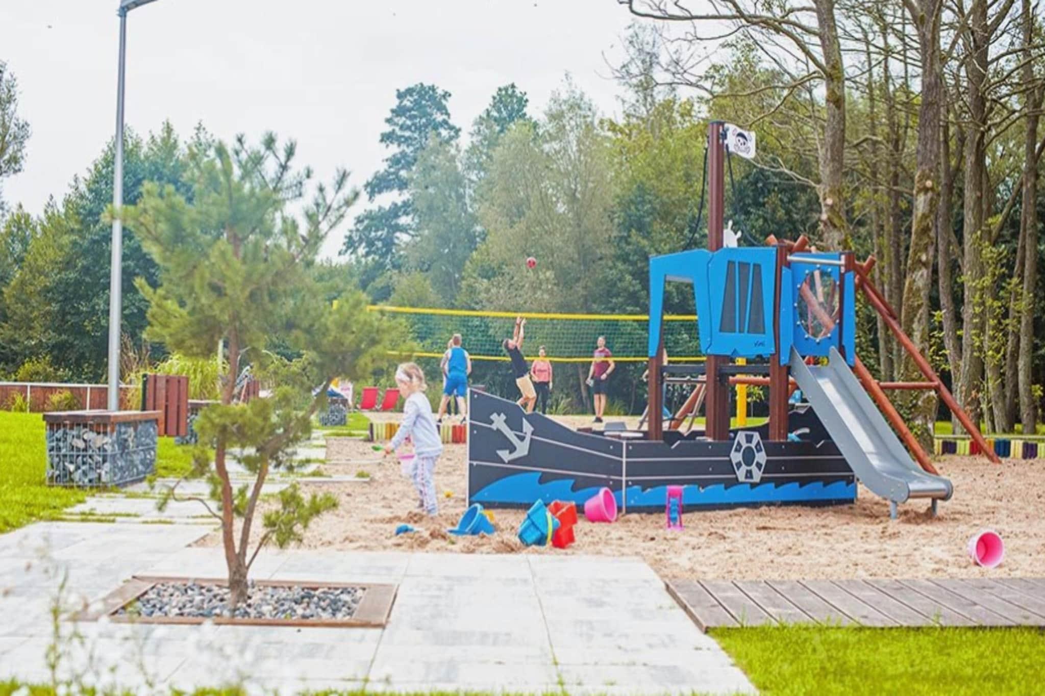 Parterre: (offene Küche(Kochplatte(2 Kochplatten, Ceranfeld, elektrisch), Wasserkocher, Toaster, Dunstabzugshaube, Kaffeemaschine, Spülmaschine, Kühl-/Gefrierkombination), Wohn/Esszimmer(Doppelschlafcouch, TV(Flatscreen, digital, smart TV, Deutsch Fernsehsender, internationale TV-Kanäle), Esstisch(6 Personen)), Badezimmer(Dusche, Waschbecken, Toilette, Föhn)) In der 1. Etage: (Schlafzimmer(Doppelbett), Schlafzimmer(Einzelbett, Einzelbett)) Rezeption, Internet, Parkplatz, Kosmetikzentrum, Massage, Sauna, Sportplatz, Angeln, Volleyvallfeld, Schach, Restaurant, Bar, Spielplatz, Liegewiese, Babybadewanne, Heizung(Fußbodenheizung, durch Klimaanlagen), Klimaanlage, Terrasse(alleinige Nutzung, 12 m2), Garten(Gemeinschaftliche Nutzung mit anderen Gästen, umzäunt, 10000 m2), Gartenmöbel, Liegen, Grill(auf Anfrage, elektrisch), Pool(Gemeinschaftliche Nutzung mit anderen Gästen, im Garten, beheizbar, 10 x 5 m., geöffnet von 1/2 Mai bis einschließlich Sep), Fitnessgeräte, Hängematte, Hochstuhl, Gartenhaus, Babybett (kostenpflichtig), Alarmanlage