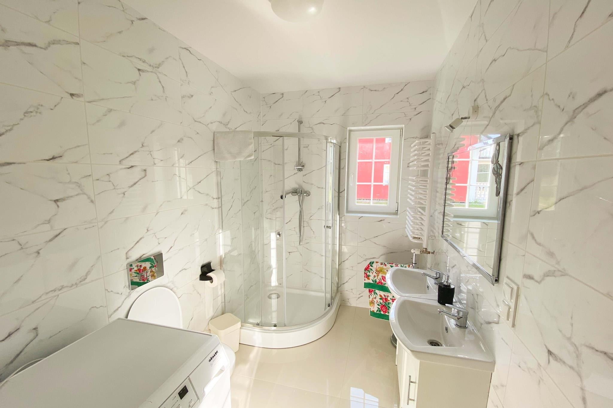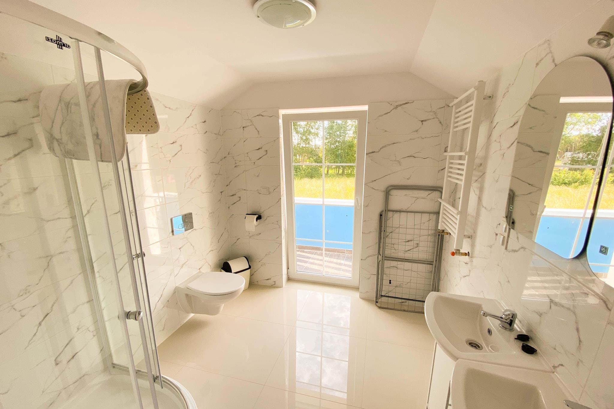 Freistehendes Ferienhaus im malerischen Nowe Warpno. Hier können Sie entspannte Urlaubstage an der frischen Luft verbringen, denn eine überdachte Terrasse, ein Balkon und ein Grillplatz laden zu gemeinsamen Stunden ein. Machen Sie es sich bei kühlerem Wetter oder am Abend auf dem Spaziergang zum Hafen gemütlich und schmieden Sie Pläne für den nächsten Urlaubstag. Nowe Warpno ist eine beschauliche Kleinstadt in Westpommern. Ruhesuchende und Naturliebhaber kommen in der unberührten Natur voll auf ihre Kosten. Aktivitäten in der Nähe: Von Ihrem Ferienhaus sind es nur wenige Minuten ins Stadtzentrum. Angeln können Sie an vielen Stellen rund um den Hafen und es gibt auch ein Fischrestaurant. Auch auf ausgedehnten Radtouren können Sie die Natur der Umgebung erkunden Mobilität: Nicht geeignet für Personen mit eingeschränkter Mobilität. Nebenkosten vor Ort zahlbar: Kaution: 200 EUR. Kurtaxe: 0,80 EUR p.P/p.T.