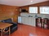 Erleben Sie den freundlich gestalteten Innenbereich mit viel Holz, der Wärme und Ruhe vermittelt. Machen Sie es sich im gemütlichen Wohnbereich mit Sofa bequem oder nutzen Sie den Essplatz für gemeinsame Mahlzeiten. Bereiten Sie einfache Mahlzeiten in der offenen Küchenzeile zu. Entspannen Sie zusätzlich in der gemeinschaftlich genutzten Sauna, die nach aktiven Tagen für wohlige Wärme sorgt.