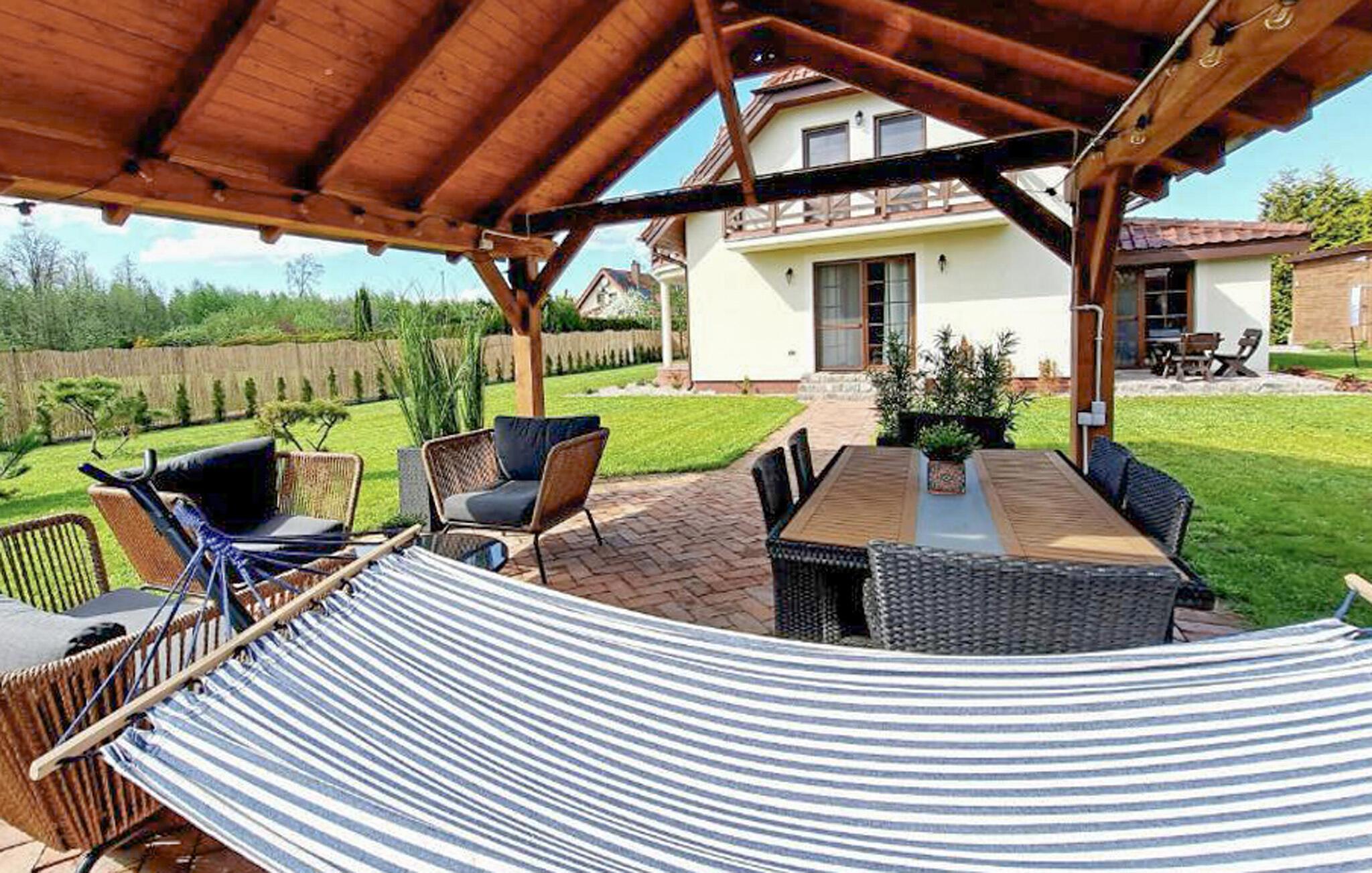 Entspannen Sie sich in diesem wunderschönen Ferienhaus mit einladendem und großem Garten.