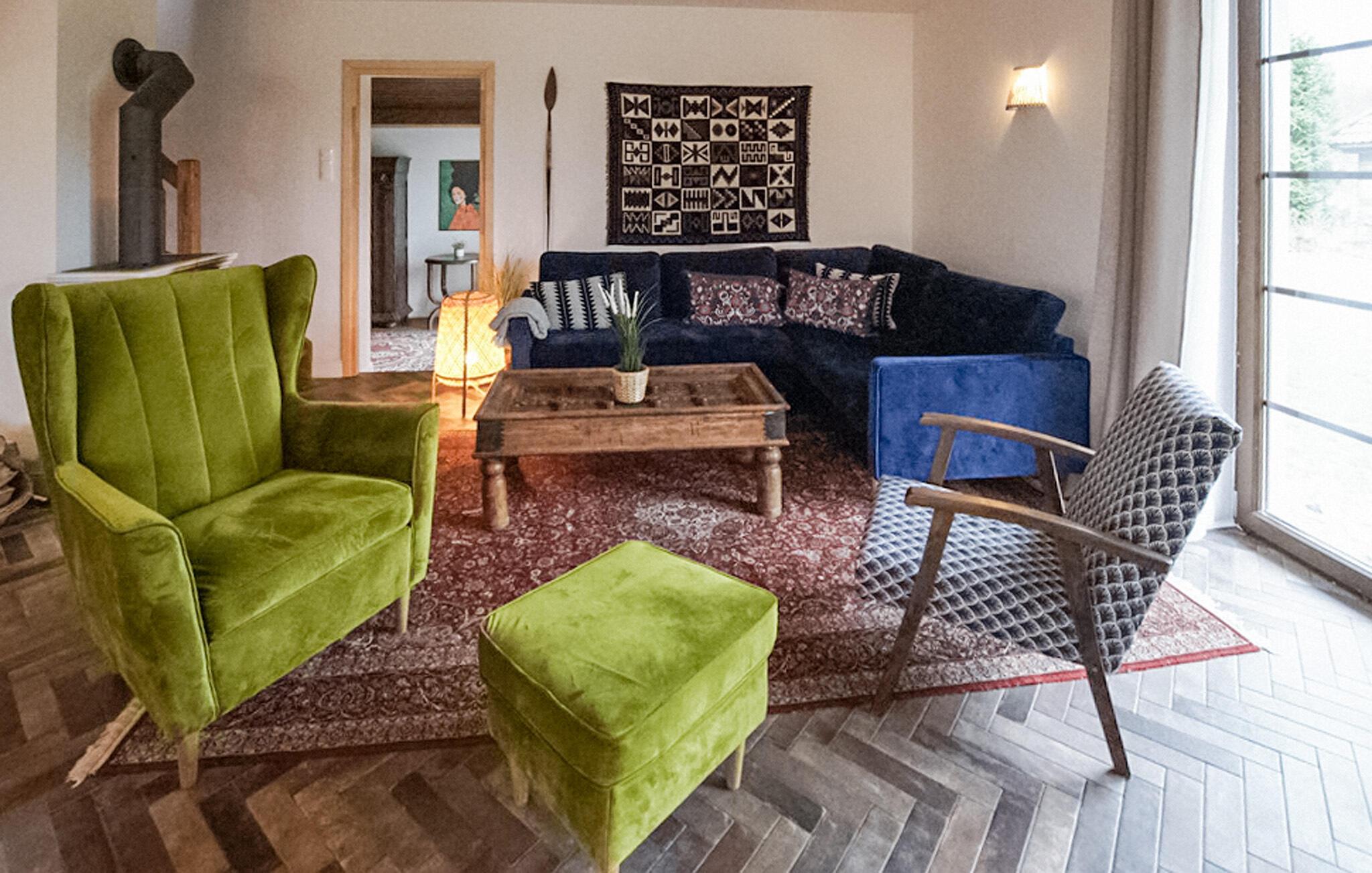 Treten Sie ein in dieses liebevoll eingerichtete Ferienhaus und genießen Sie entspannte Tage in einem warmen, einladenden Ambiente. Die stilvolle Einrichtung mit ausgewählten Möbeln sorgt für Gemütlichkeit, während der Kaminofen an kühleren Abenden für wohlige Wärme sorgt. Auf zwei Etagen haben Sie viel Platz zum Wohlfühlen – ob im behaglichen Wohnbereich oder in den charmanten Schlafzimmern. Die gut ausgestattete Küche lädt Sie zum gemeinsamen Kochen ein, und große Fenster lassen viel Licht herein, das die natürliche Atmosphäre des Hauses unterstreicht.